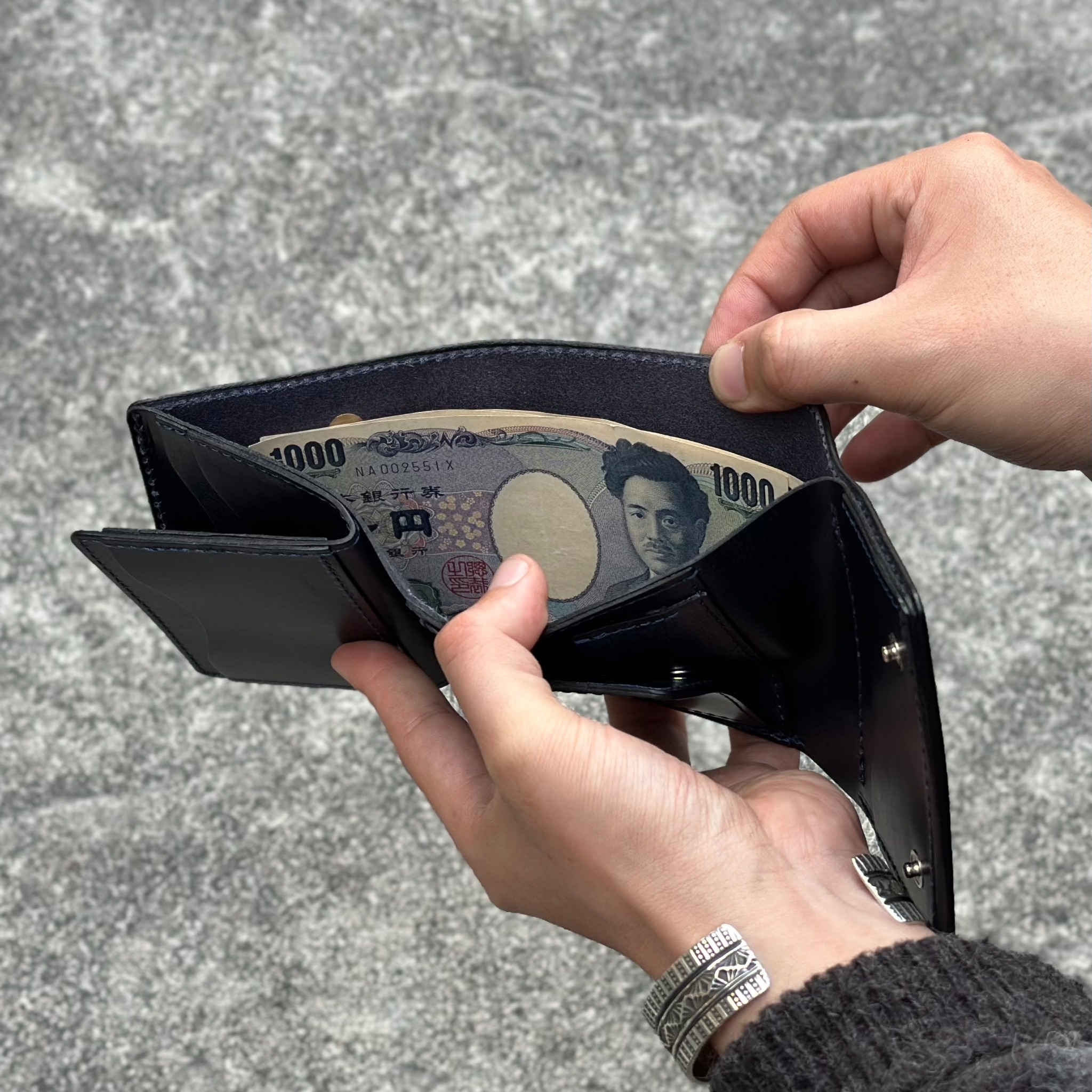 2ボタン式のスナップを開けると、両サイドにカードポケット、中央がコインポケットとなります。