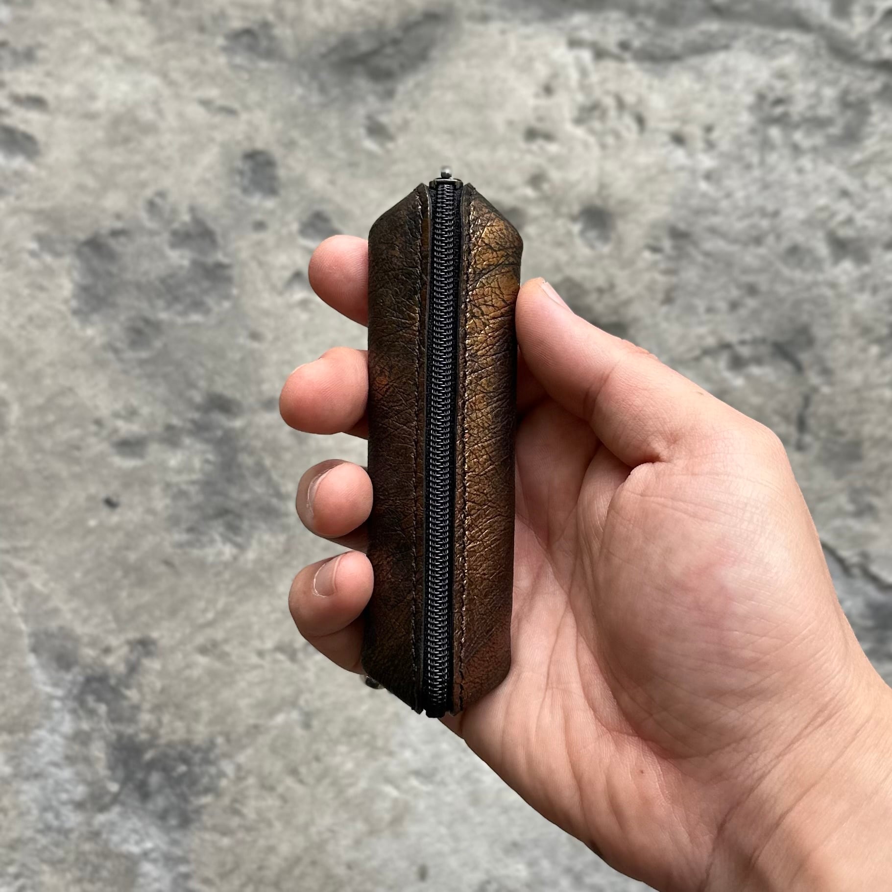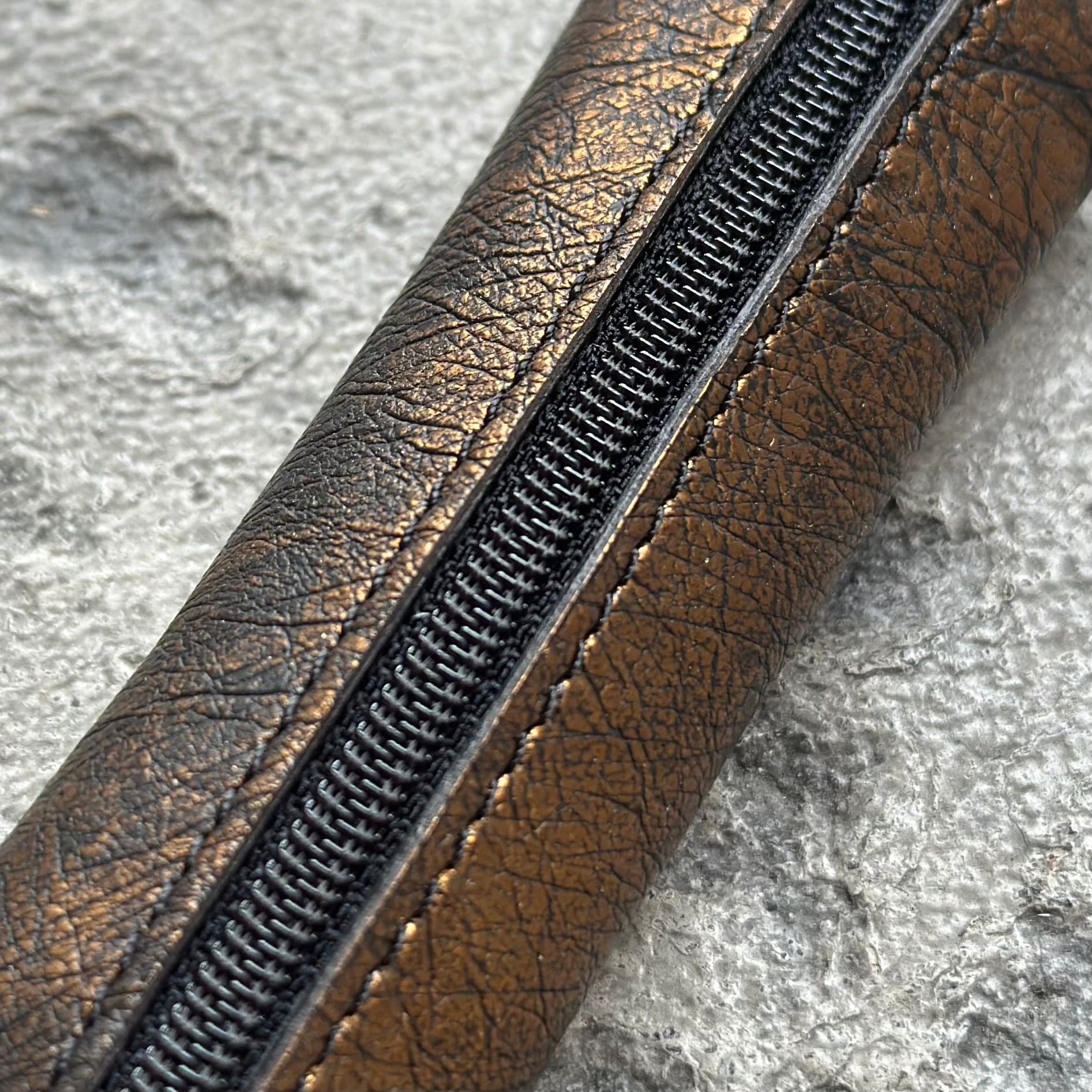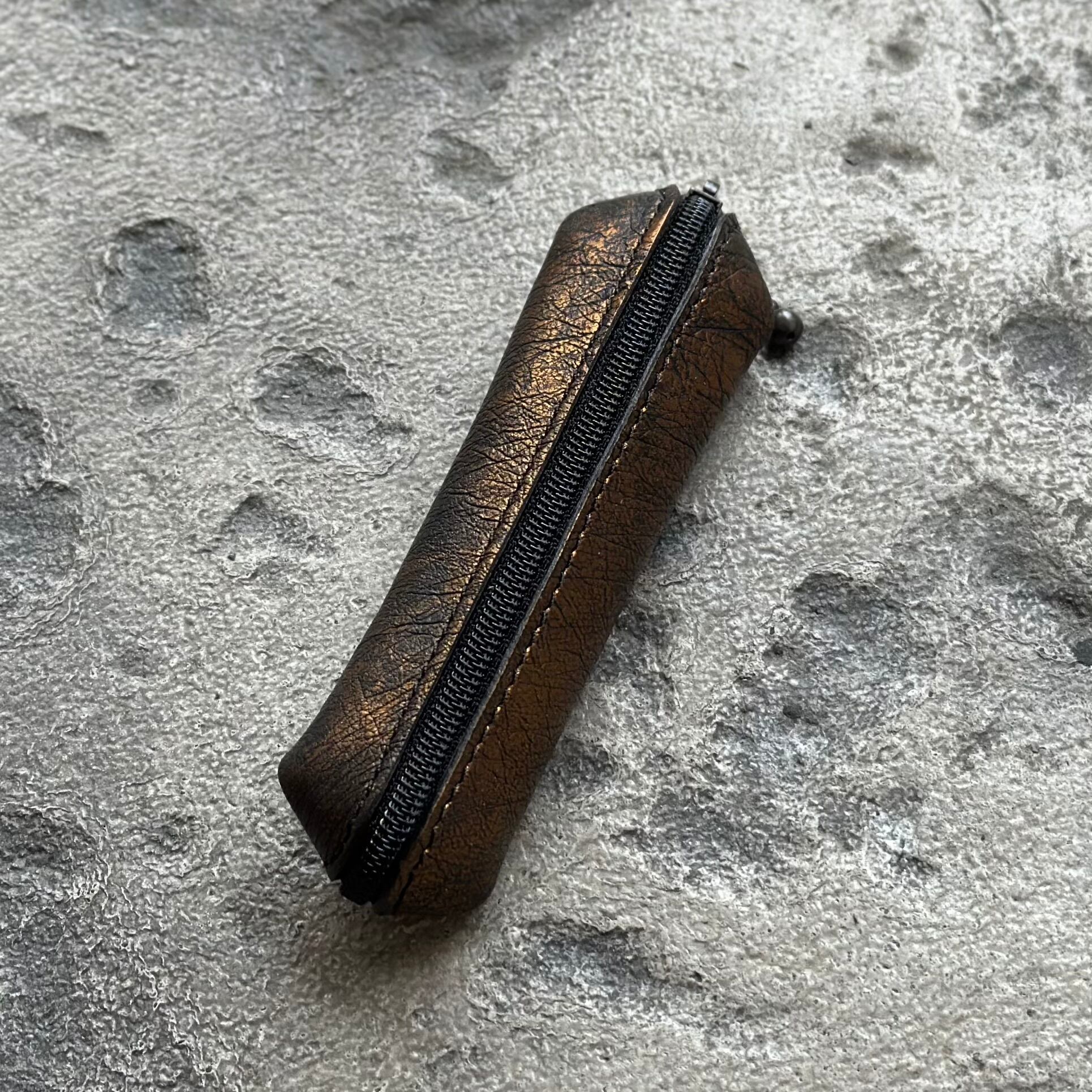 限定カラーのメタリックゴールドのオーストリッチを使用したコインケース。