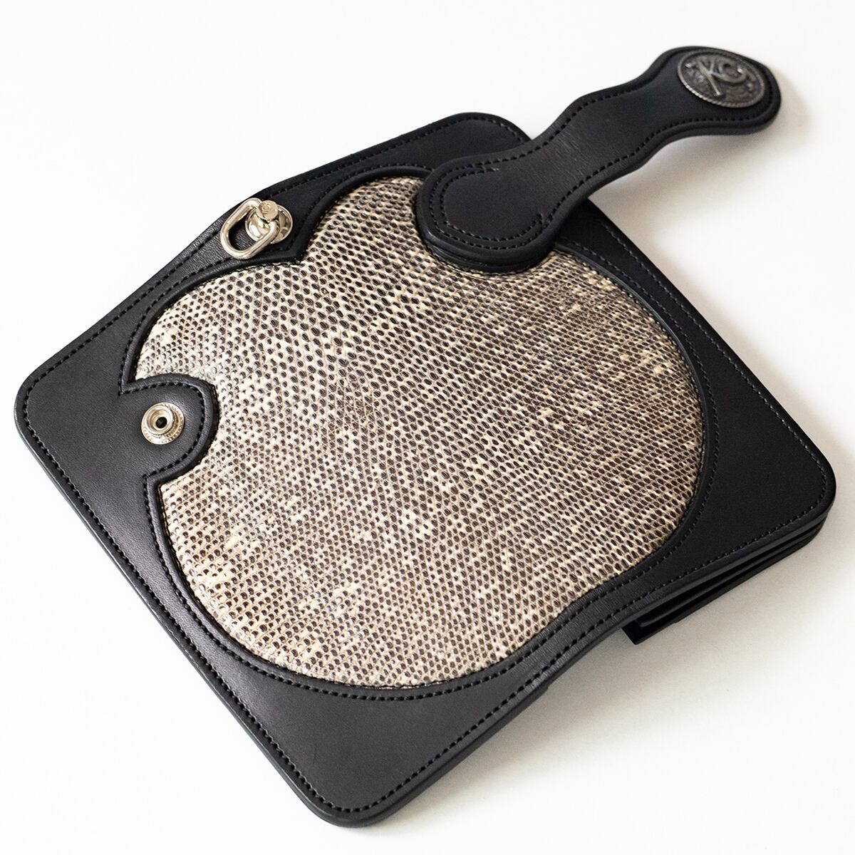 職人の手によって丁寧にインレイ加工されたリングリザードは、他の革にはない存在感と高級感を放ちます。