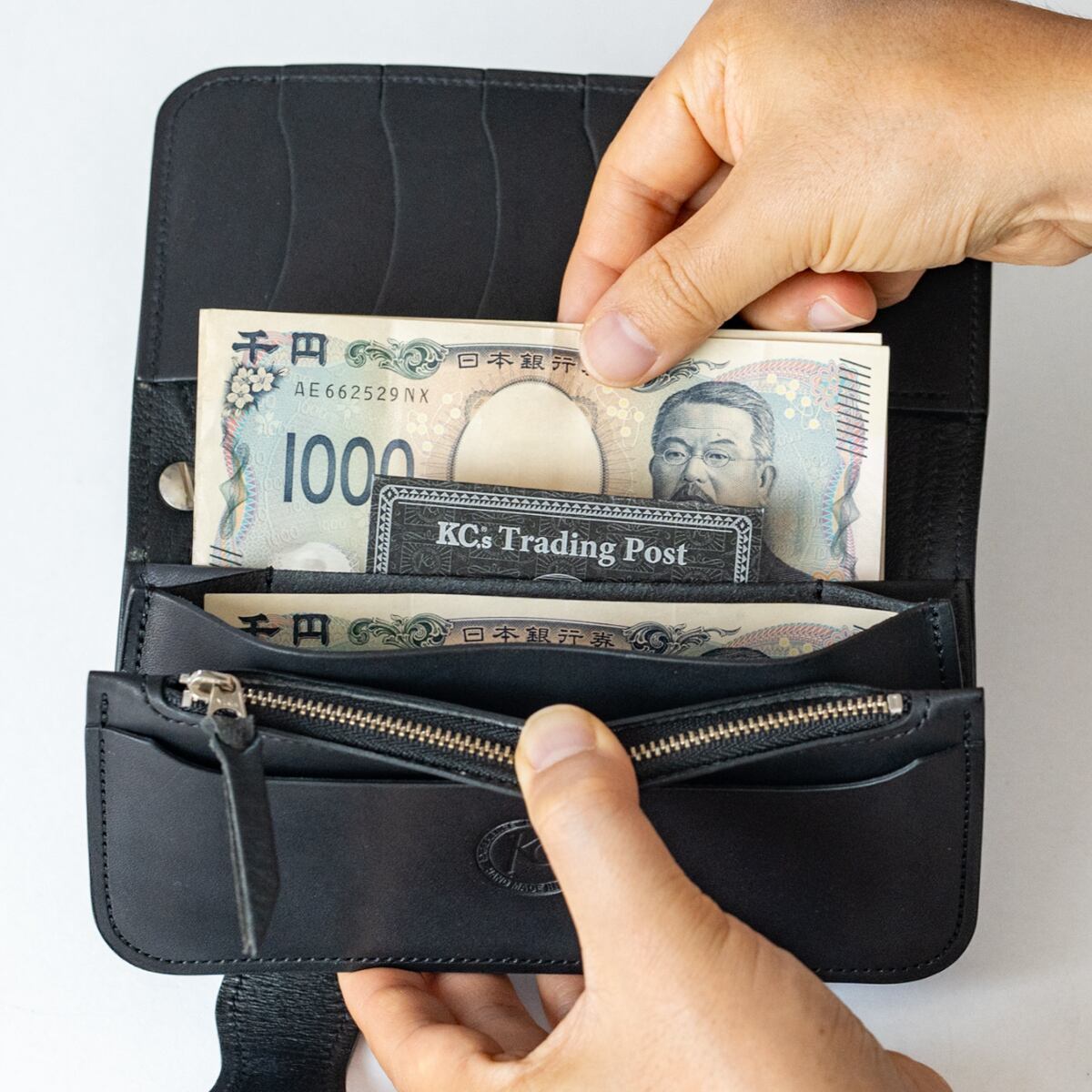 KC,sオリジナルのコンチョがアクセントとなり、武骨さと品格を両立。