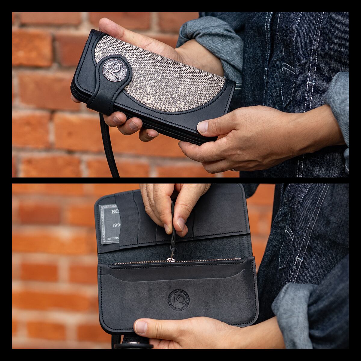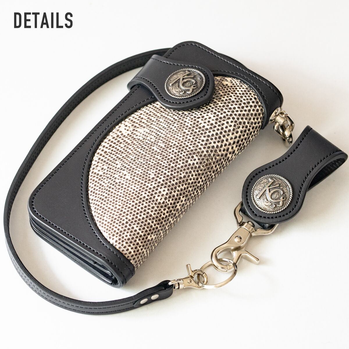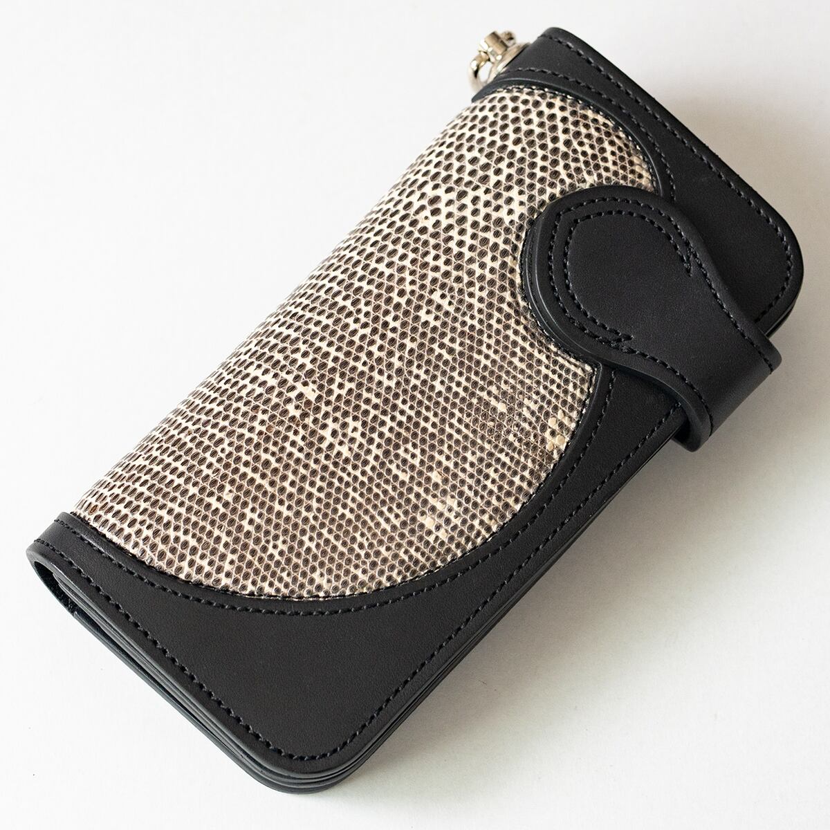 直営店限定商品。リングリザード(トカゲ革)の独特な鱗模様と上品な光沢が魅力の、ラグジュアリーなライダースウォレット。