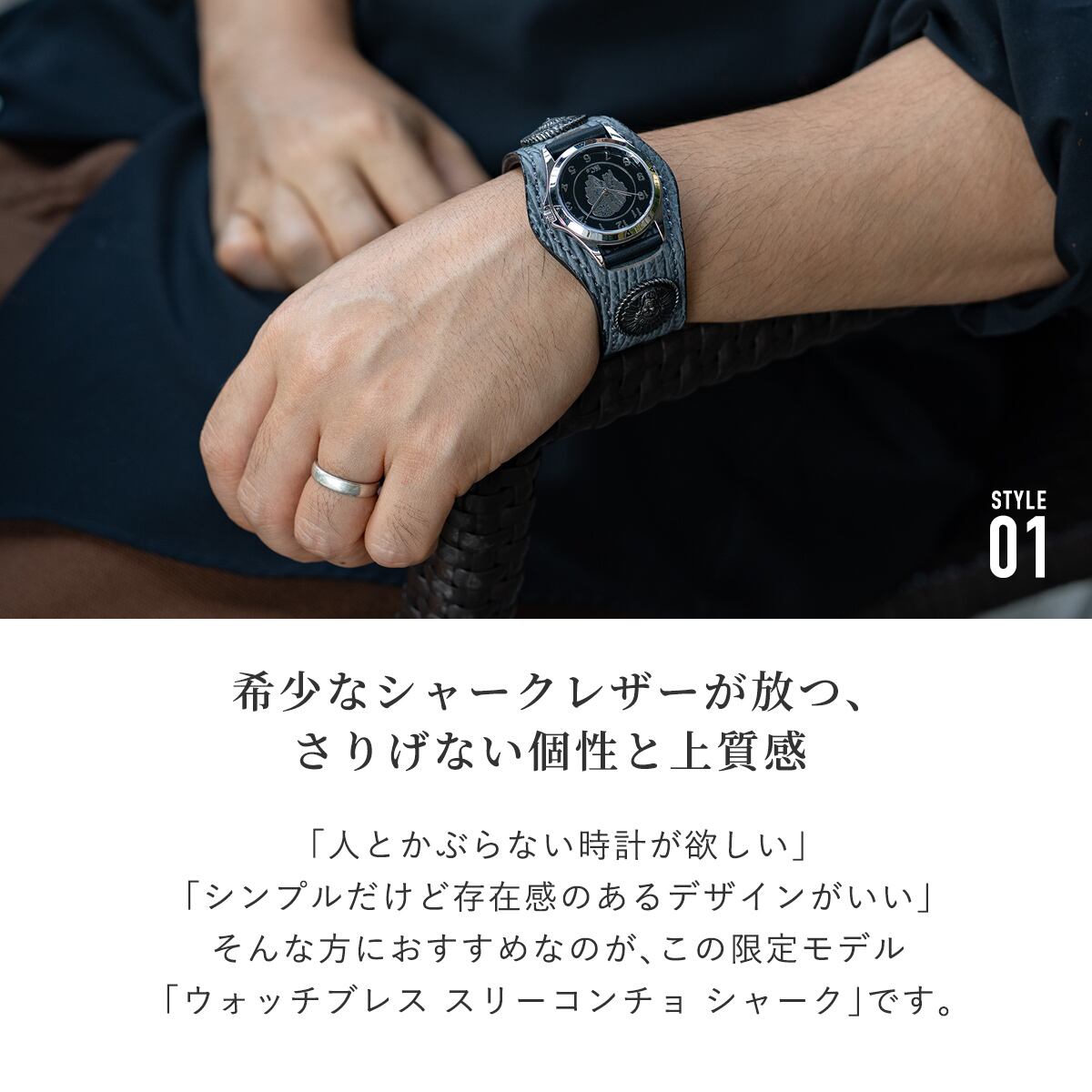 そんな方におすすめなのが、この限定モデル「ウォッチブレス スリーコンチョ シャーク」です。