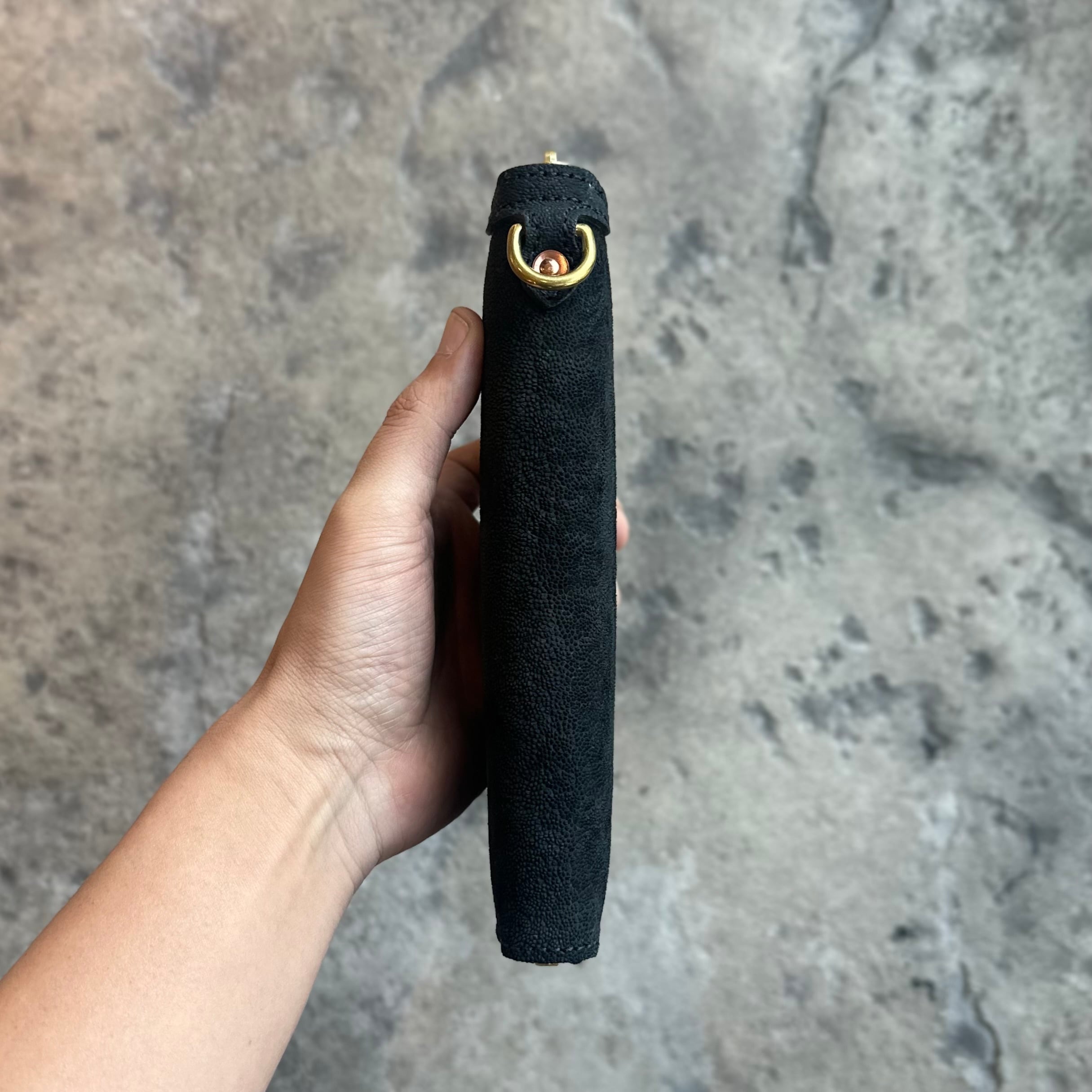 ラウンドジップ4はウォレットチェーン等を装着いただけるように真鍮色のリングを付け、幅広い用途に対応出来るように仕上げました。