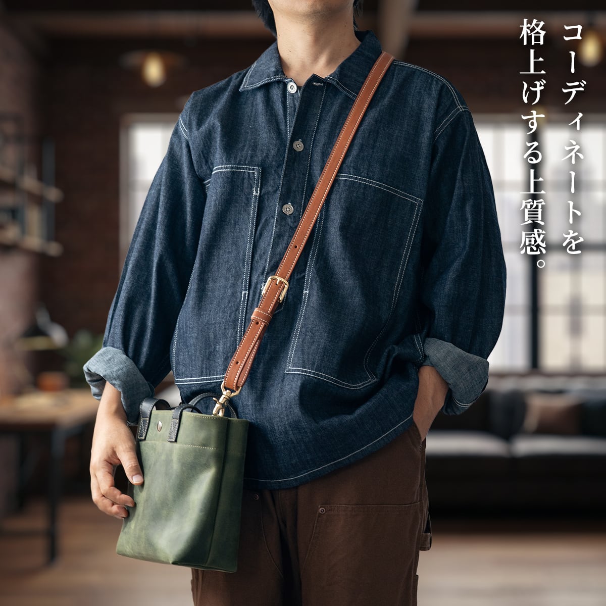 ■「本革一枚仕立ての上質感。どんなバッグも格上げ。」