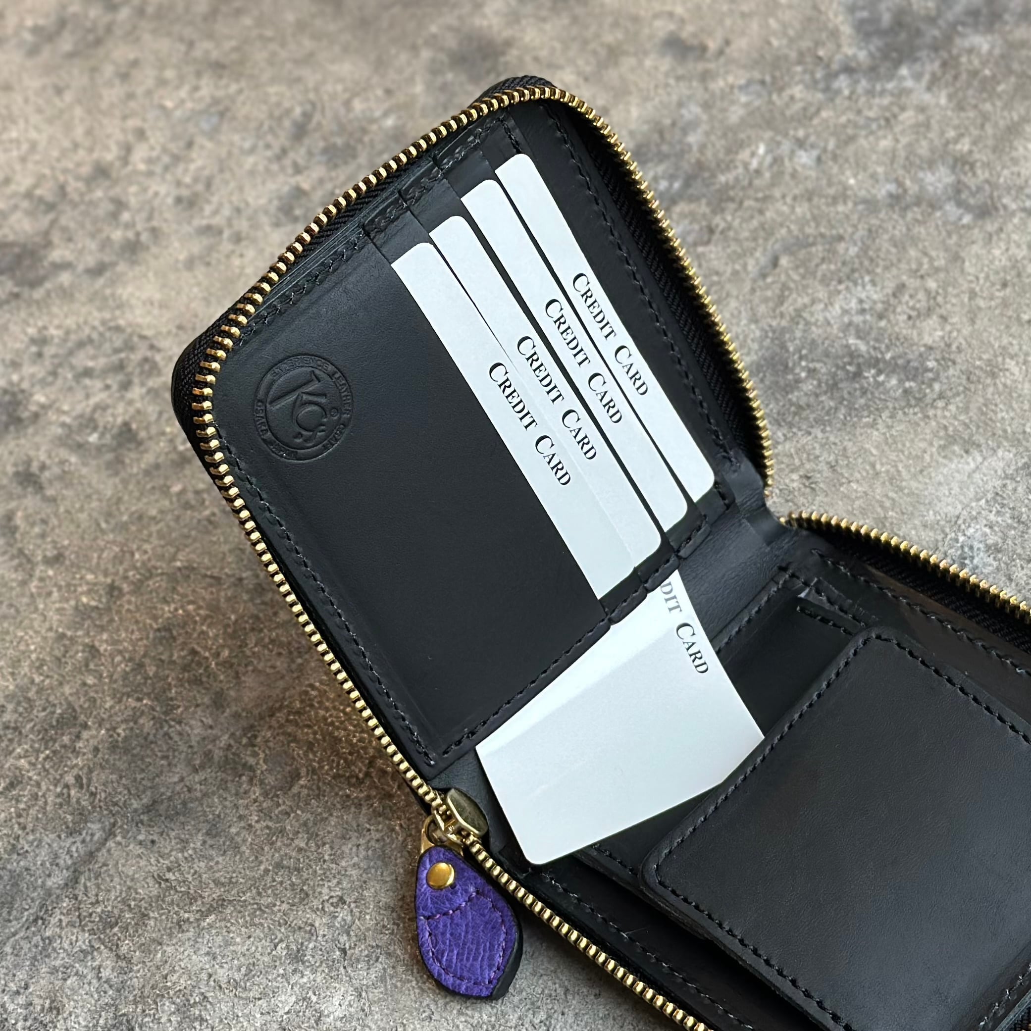開閉はコの字に大きく開く、人気のラウンドファスナー仕様です。