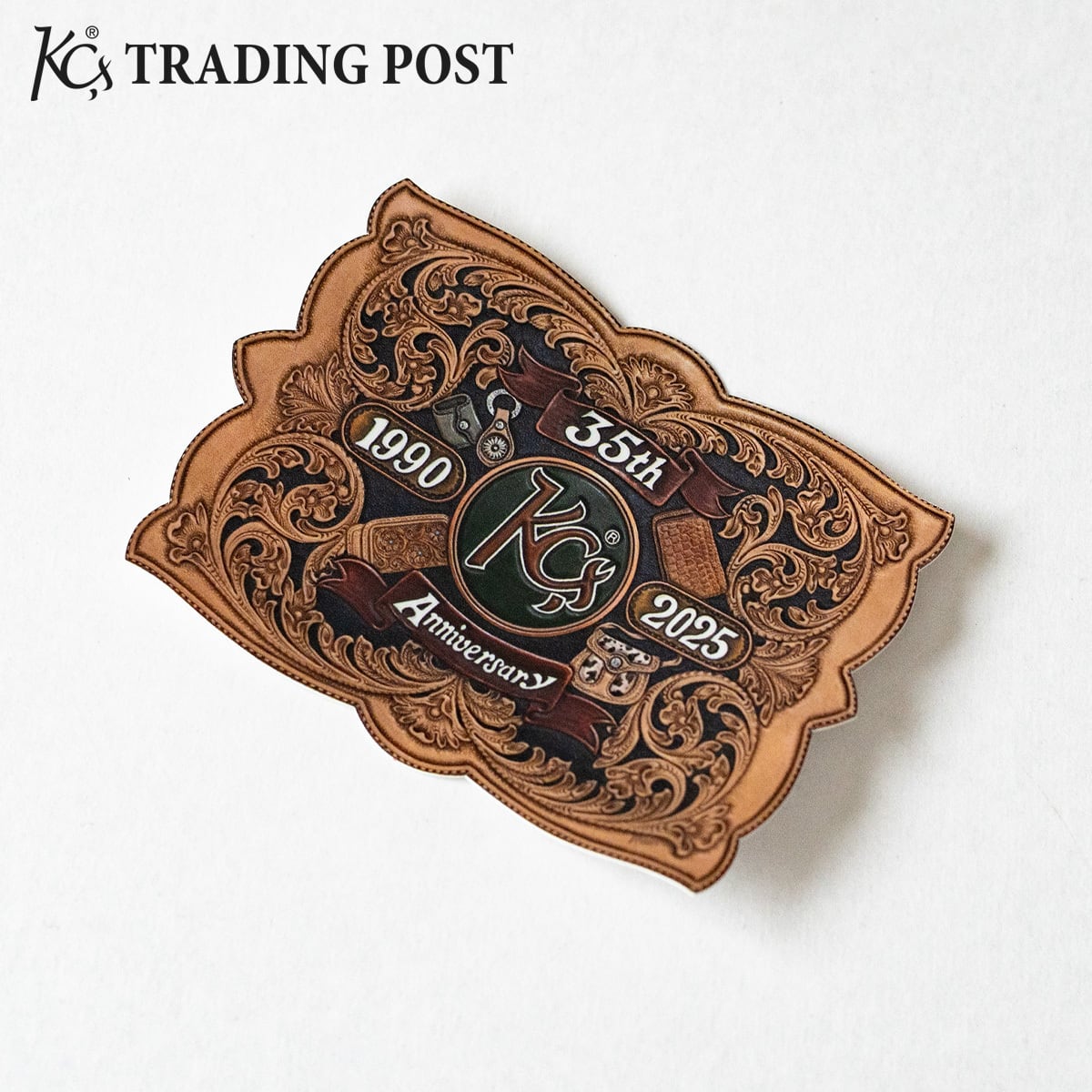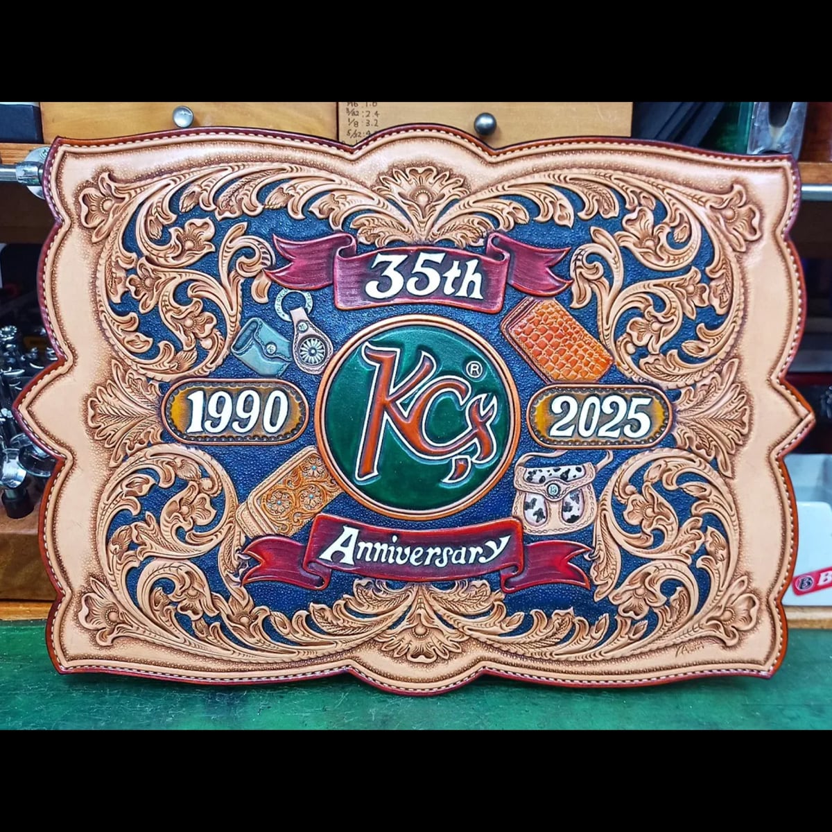 KC,s35周年を祝して「クボタクラフト」が製作してくださったレザープレートをステッカーにしました。