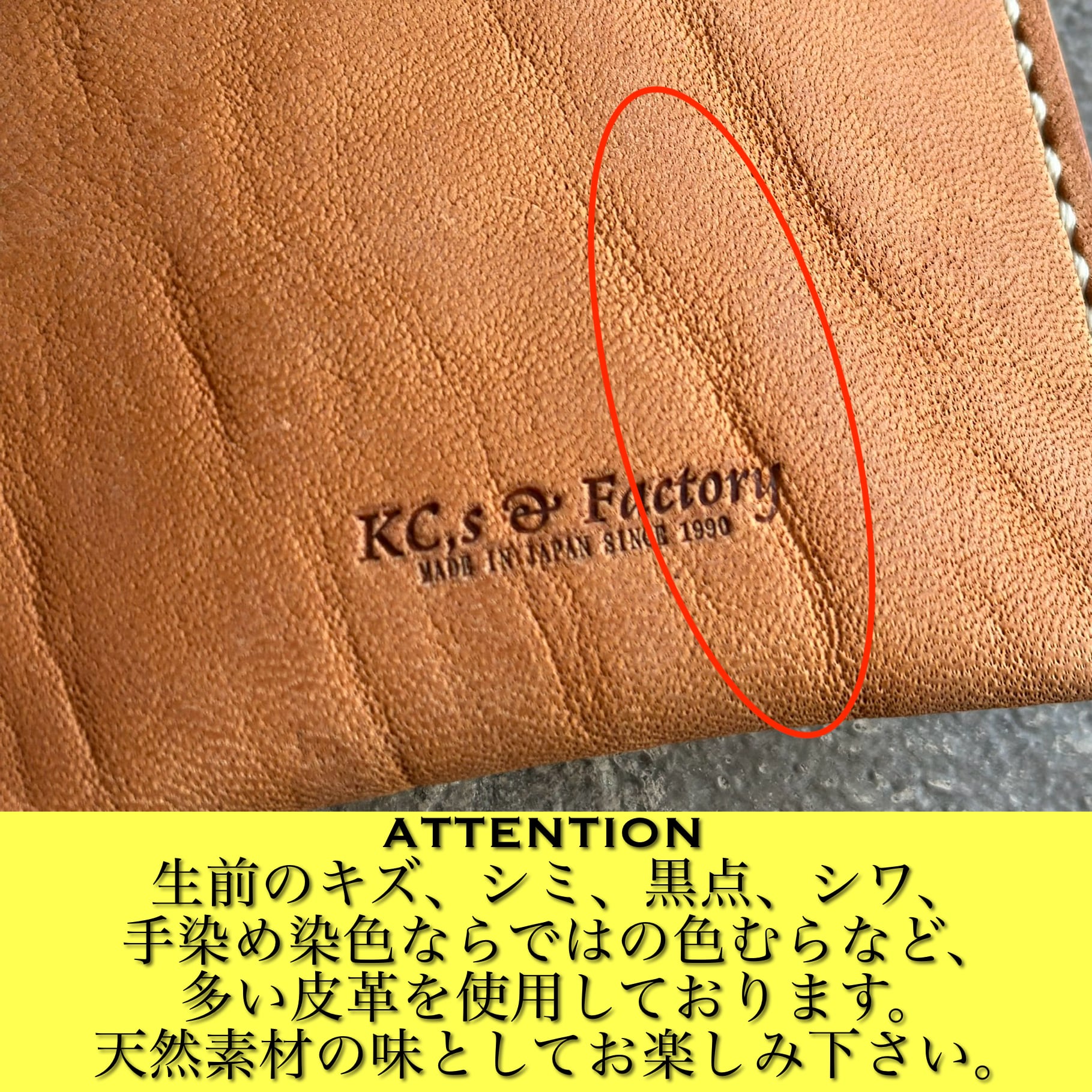 革表面にキズ、色ムラ、シワ、黒点などがある場合がありますが、天然皮革の個性としてお楽しみ下さい。