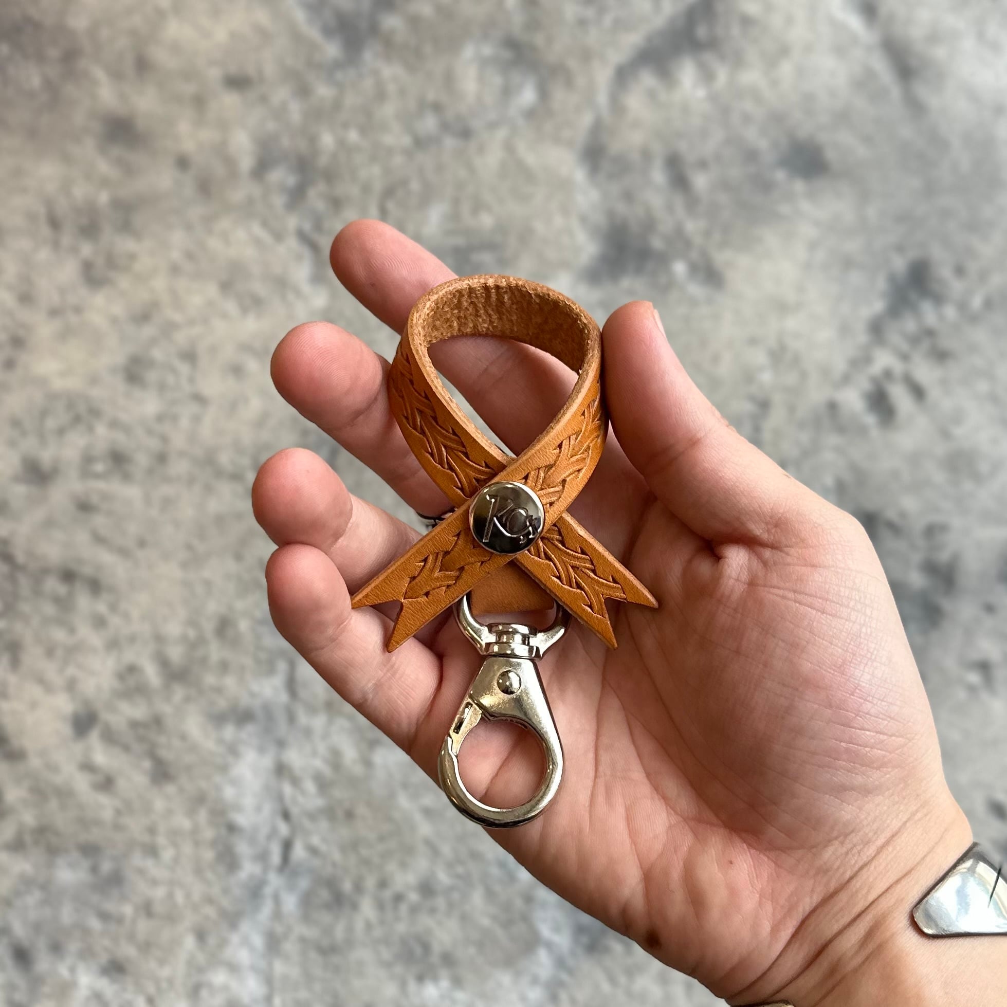 普段お使いのバッグやジーンズのベルトループ等、様々な使い方が楽しめるリボン型キーリング ボウ。