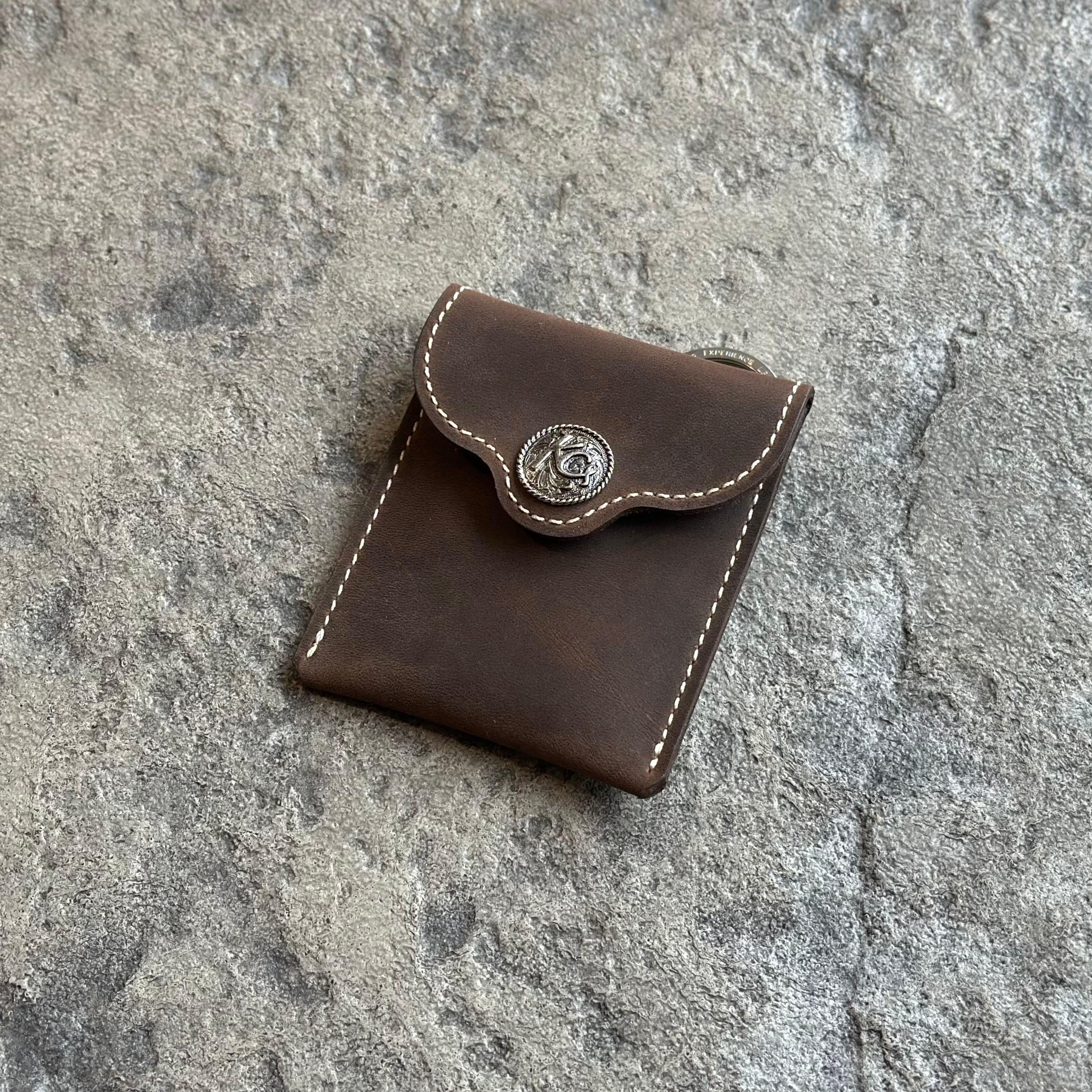 無骨な野性味と、洗練された美意識が共存する「クレイジーホースレザー(牛革)」を贅沢に使用したライターケースです。