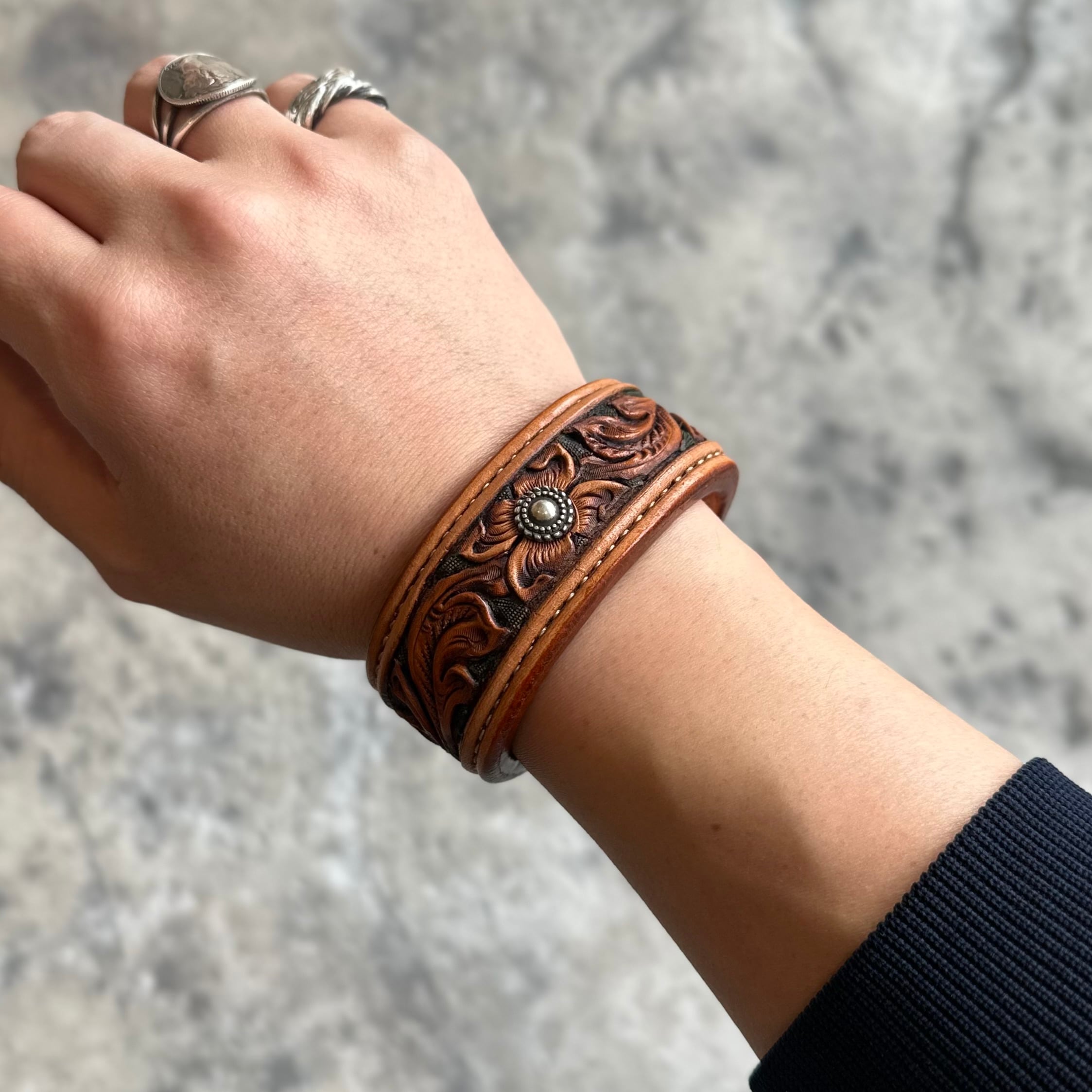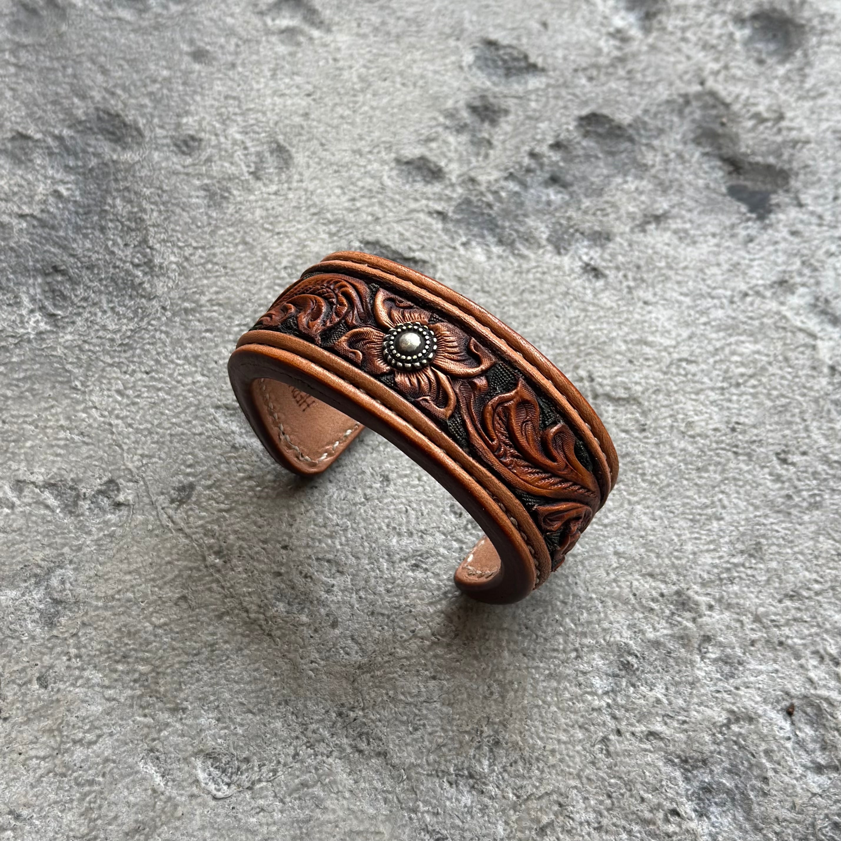 花柄の中心に輝くシルバースポットは、職人が自ら彫金し仕上げており、雰囲気抜群、カッコよさ抜群の仕上がりです。