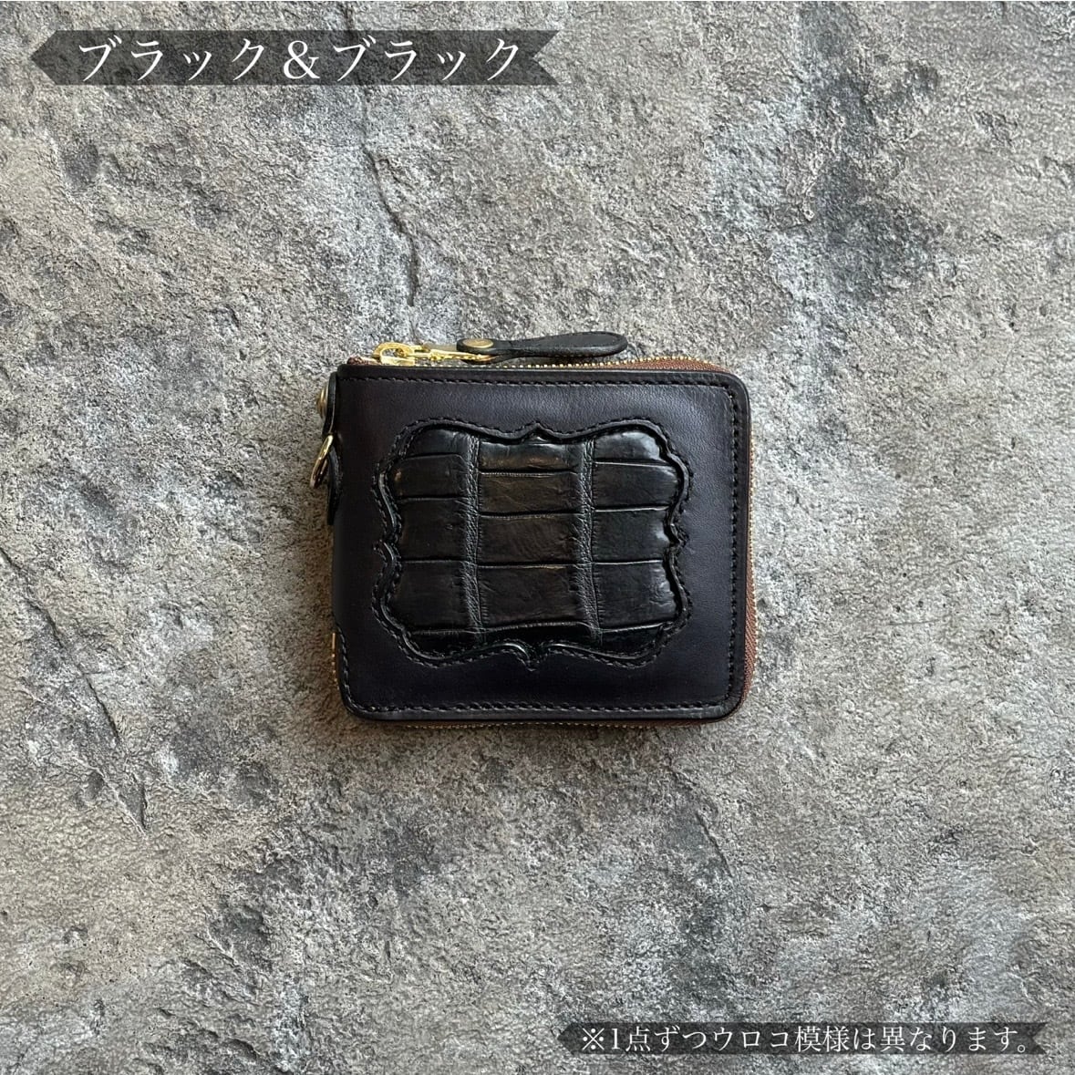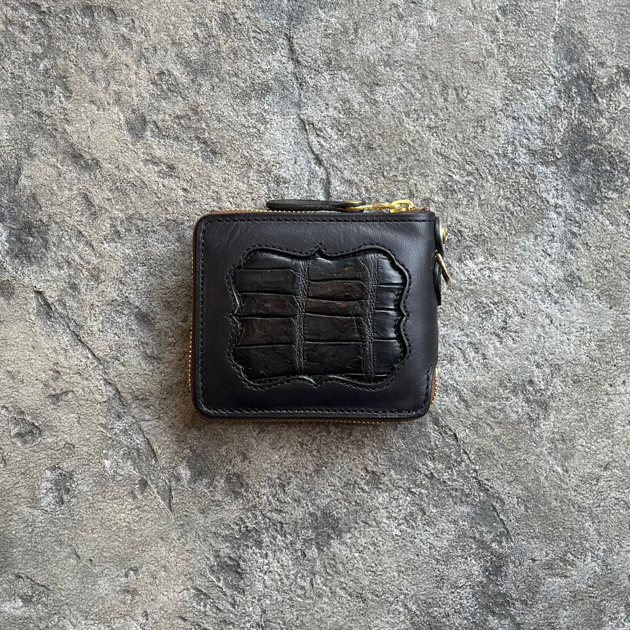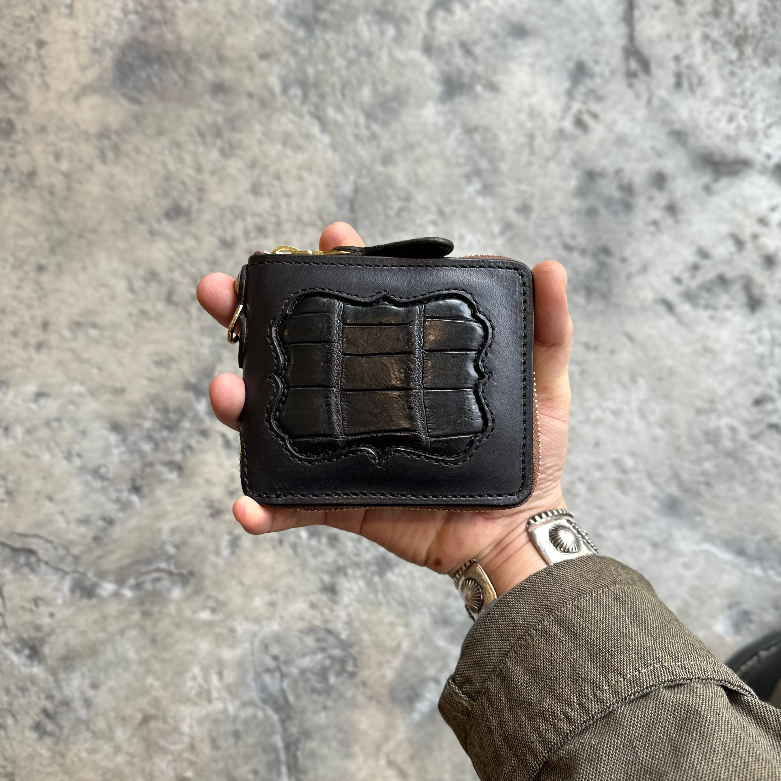 上質なイタリアンカンパーニュレザー(牛革)にクロコダイルをインレイ技法にて仕上げたビルフォールドラウンドジップ。