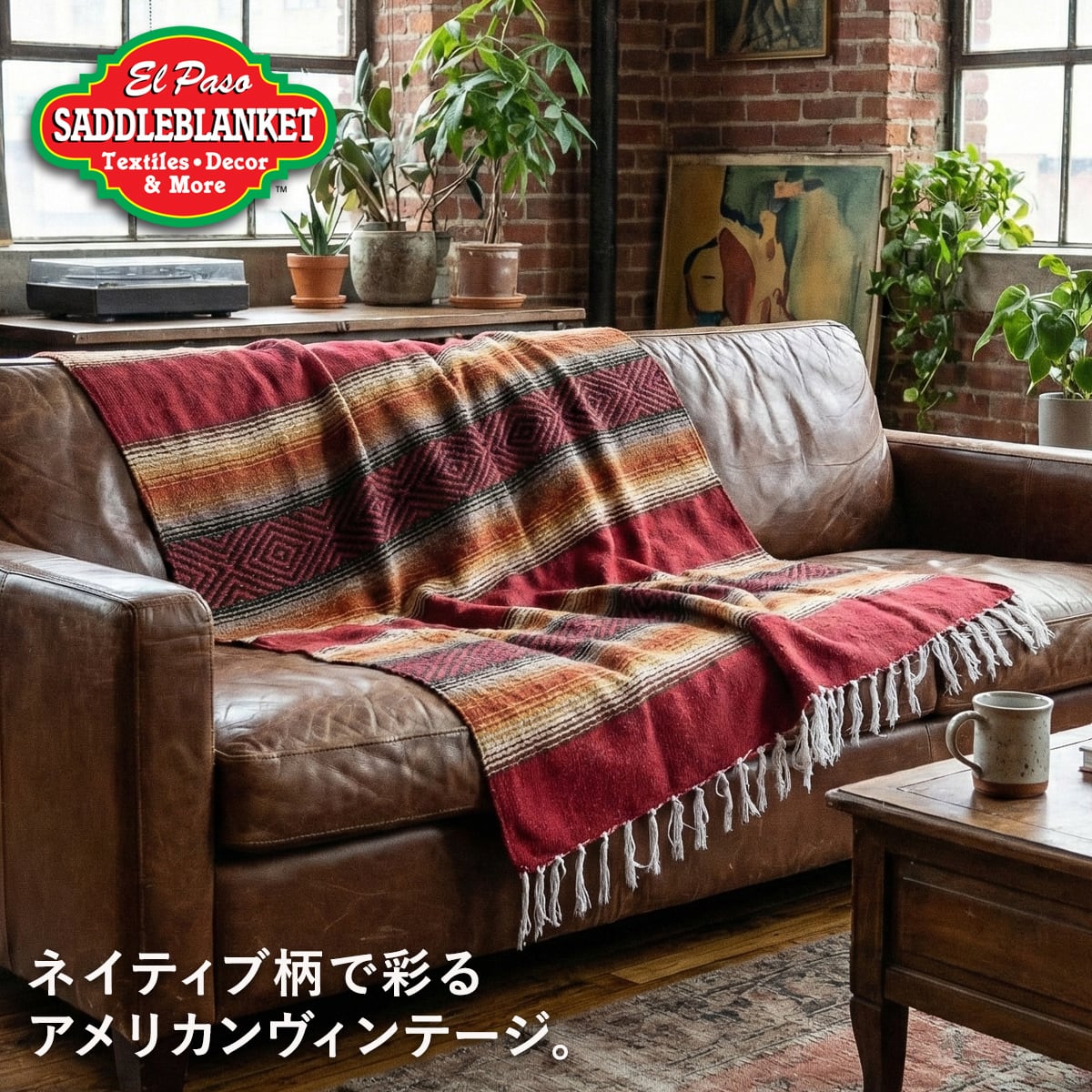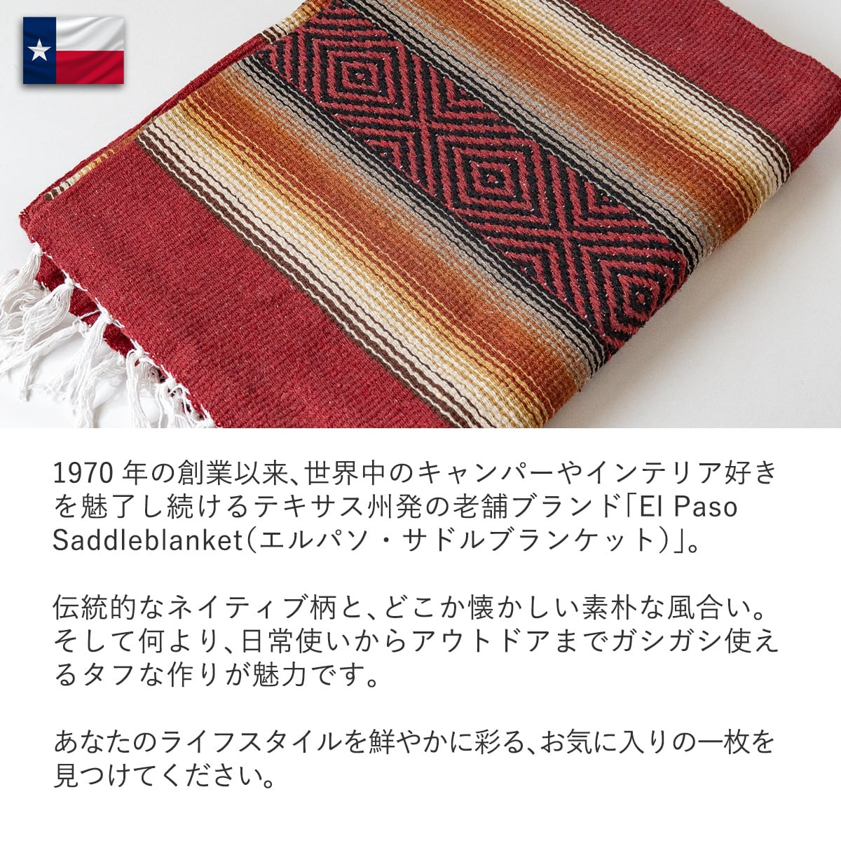 1970年、アメリカ・テキサス州の最西端、メキシコ国境に近い街エルパソで創業した「El Paso Saddleblanket(エルパソ・サドルブランケット)」。ネイティブアメリカンの伝統的なデザインや、サウスウエスト(アメリカ南西部)の文化にインスパイアされた、本格的なラグやブランケットを展開する老舗メーカーです。半世紀以上にわたり、その品質と色褪せないデザインで、アメリカ国内のみならず世界中で愛され続けています。