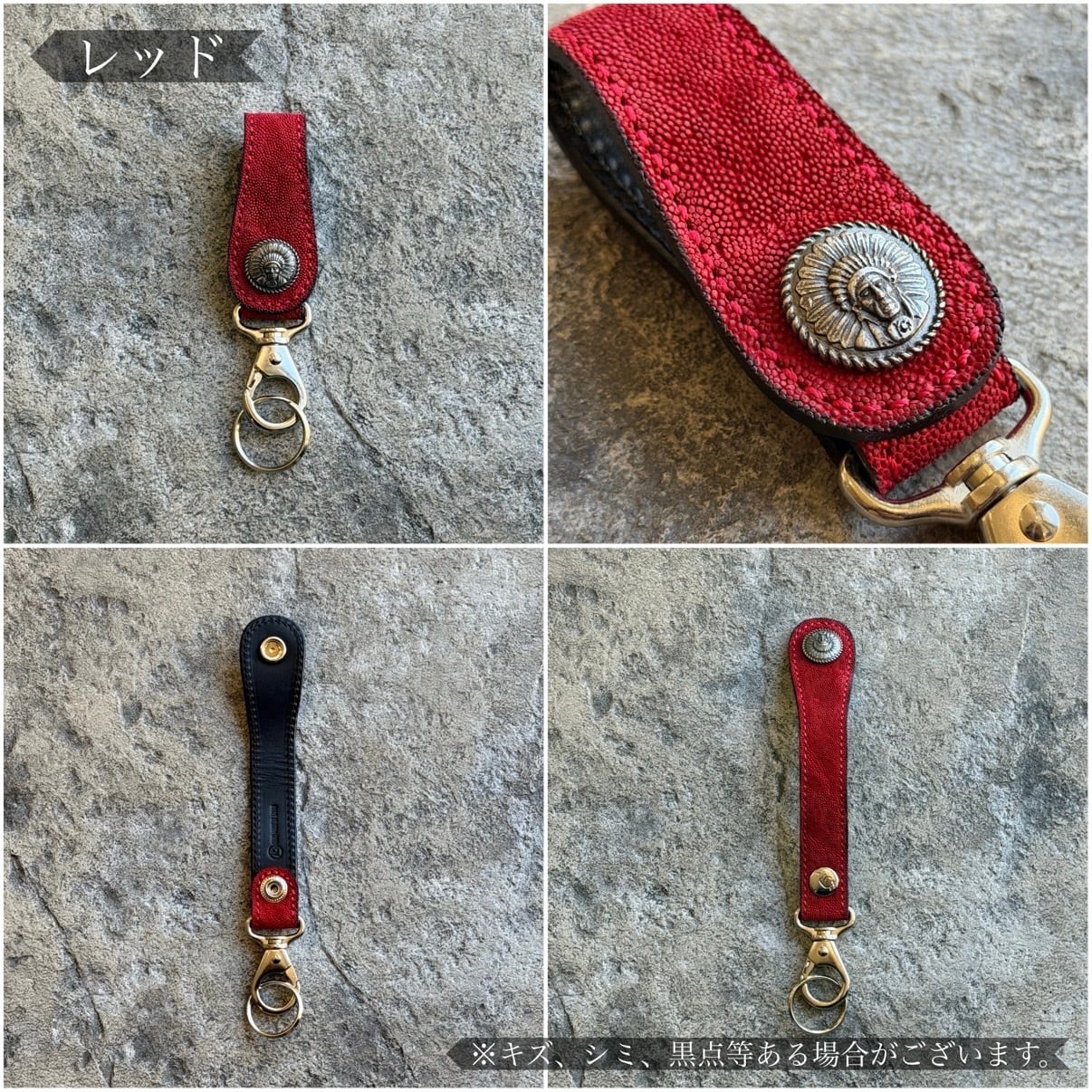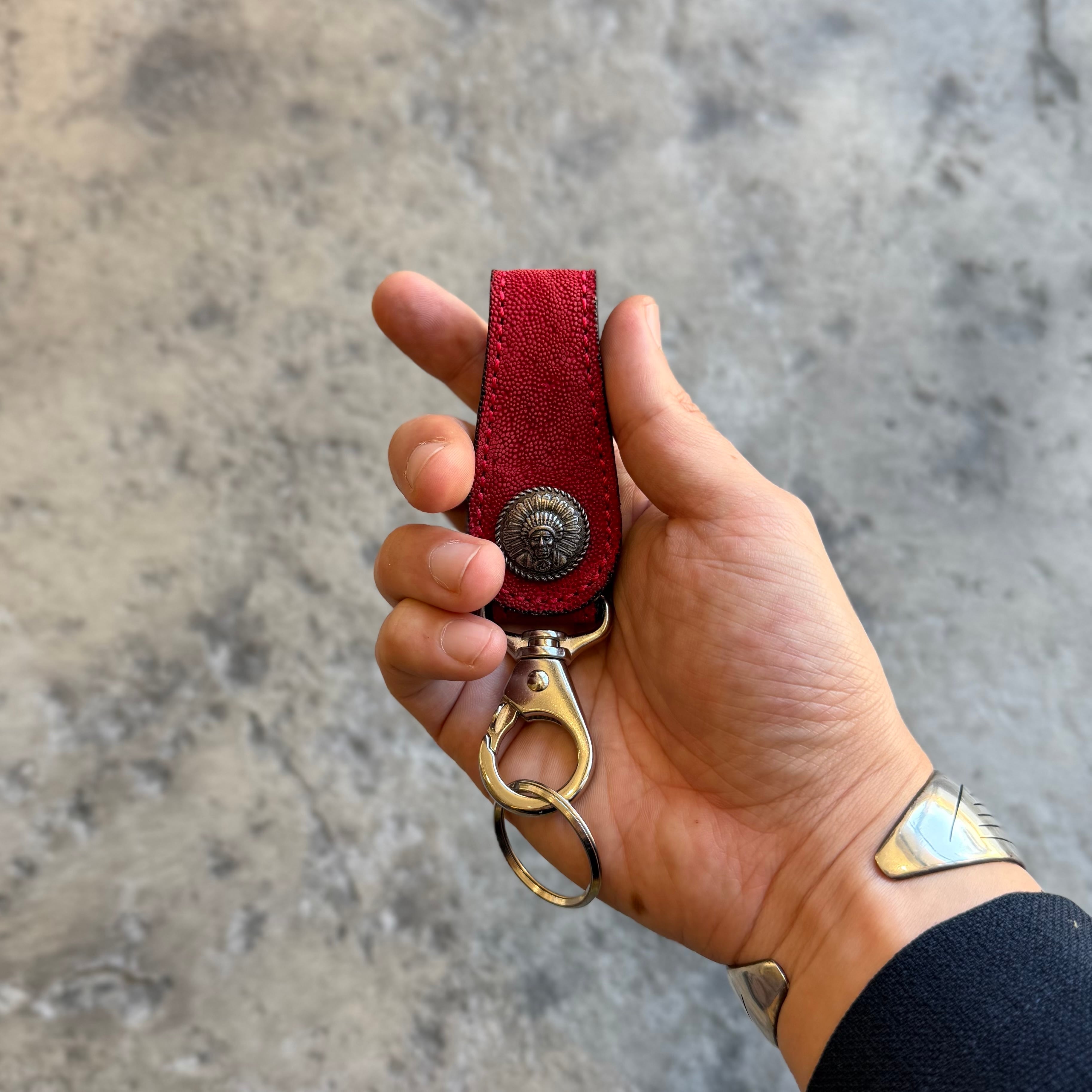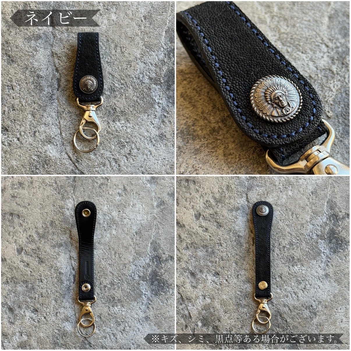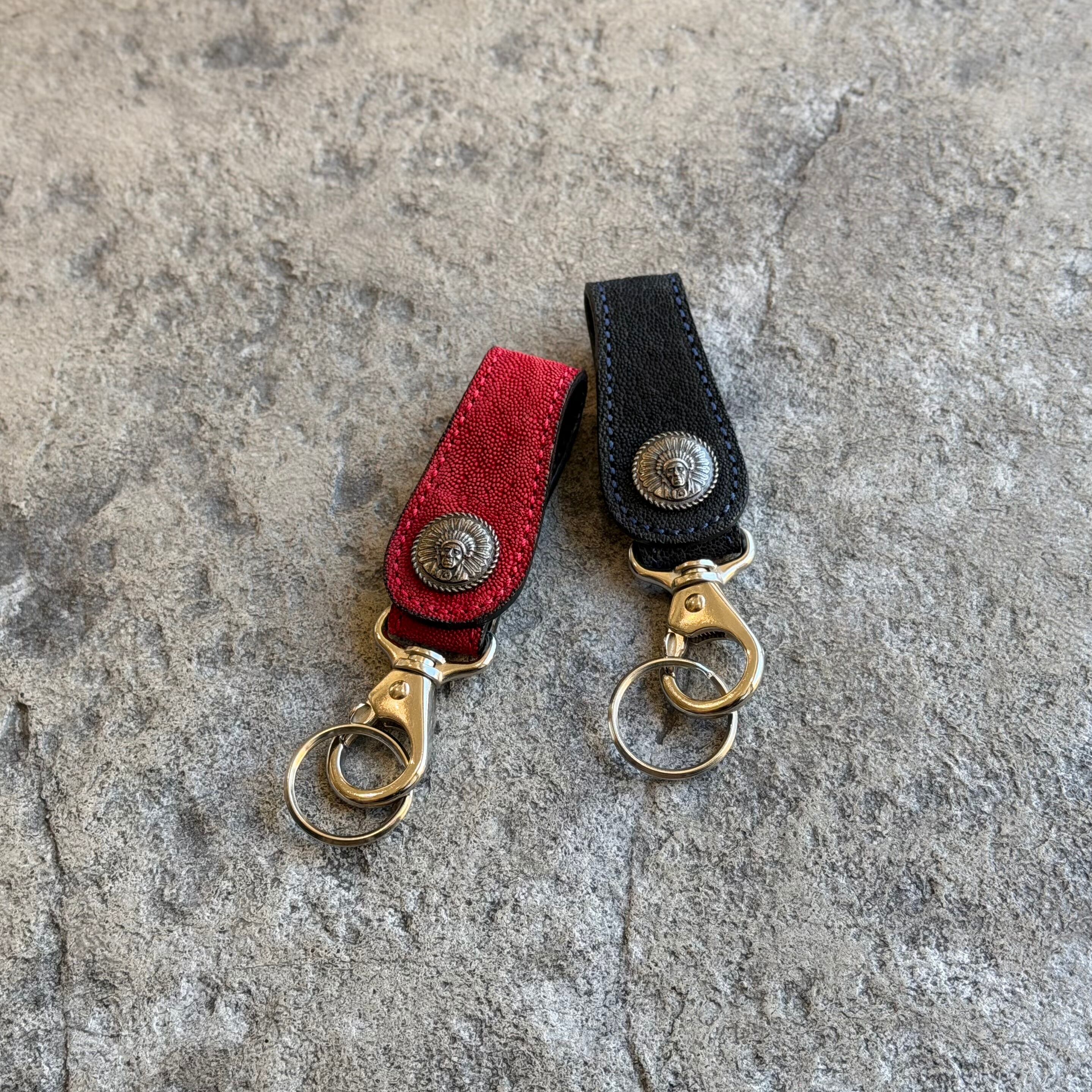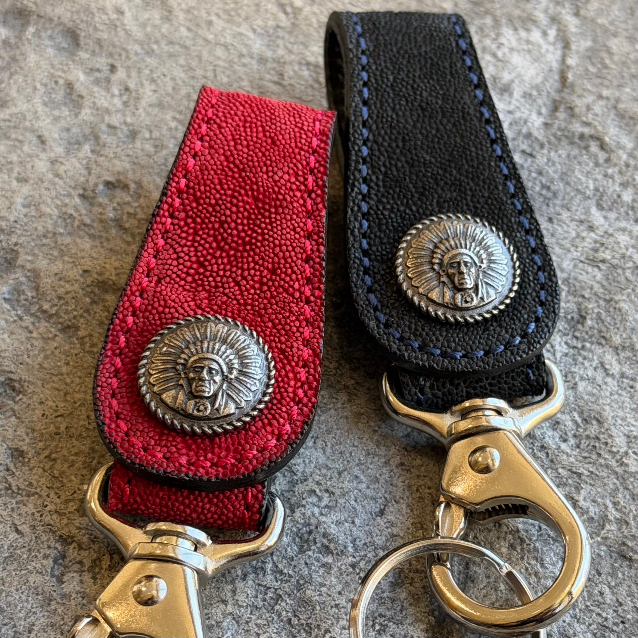 キーリング上部には、インディアンのチーフをモチーフにしたコンチョを配置。