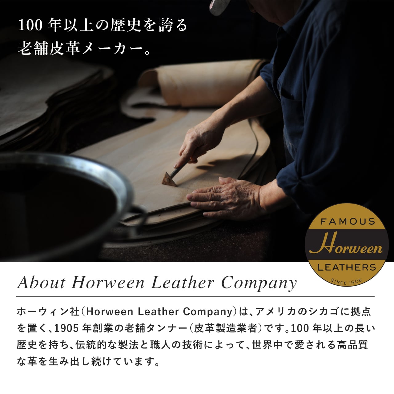 1905年創業、100年以上の長い歴史を持つホーウィン社は、クロムエクセルやシェルコードバンといった皮革を製造していることでも有名な、アメリカの老舗タンナーです。