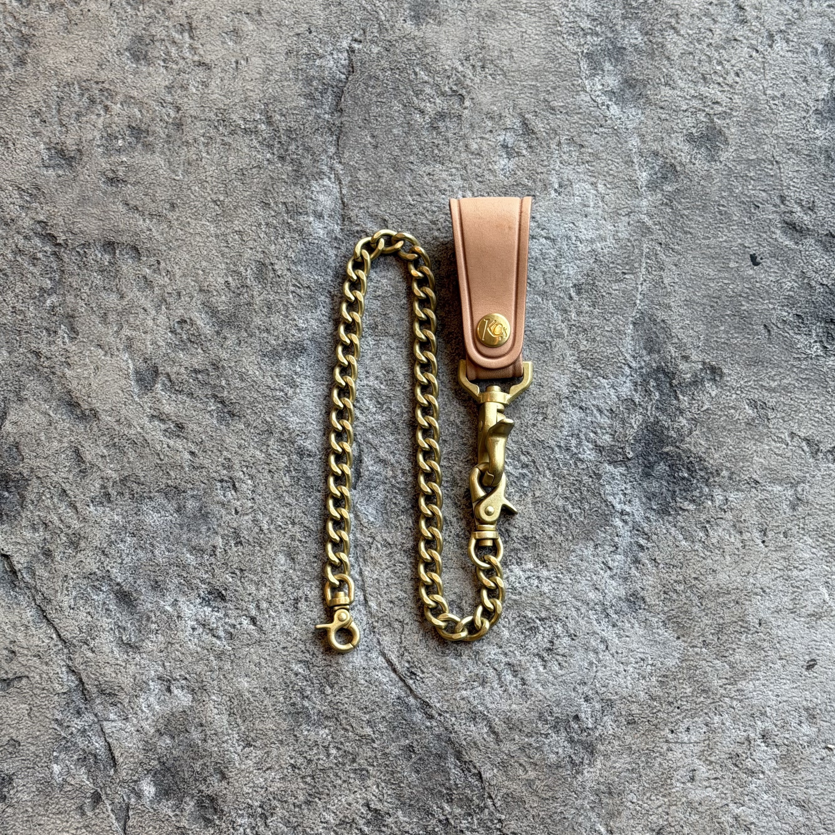 厚口の革と堅牢なブラスパーツの組み合わせは、まさにタフそのもの。耐久性を極限まで高めながらも、KC,sオリジナルの栃木レザーが放つ上質な艶とブラスの重厚な経年変化が、圧倒的な美しさを生み出します。タフな日常を共にする道具として、そしてスタイルを完成させるアクセサリーとして、細部にまでこだわり抜いた逸品です。
