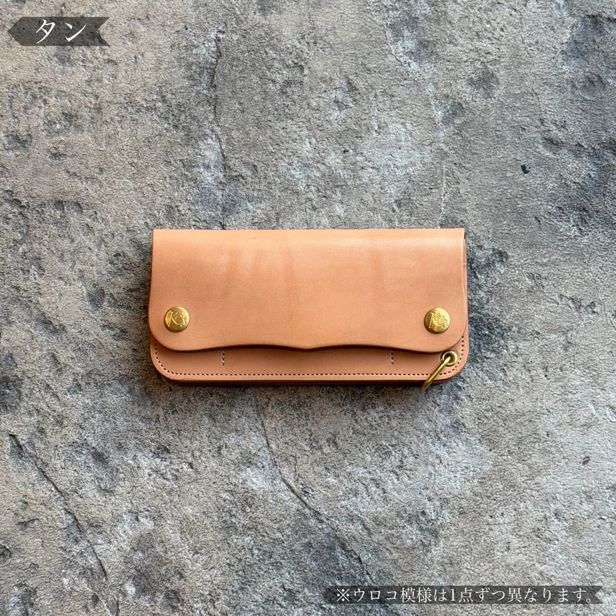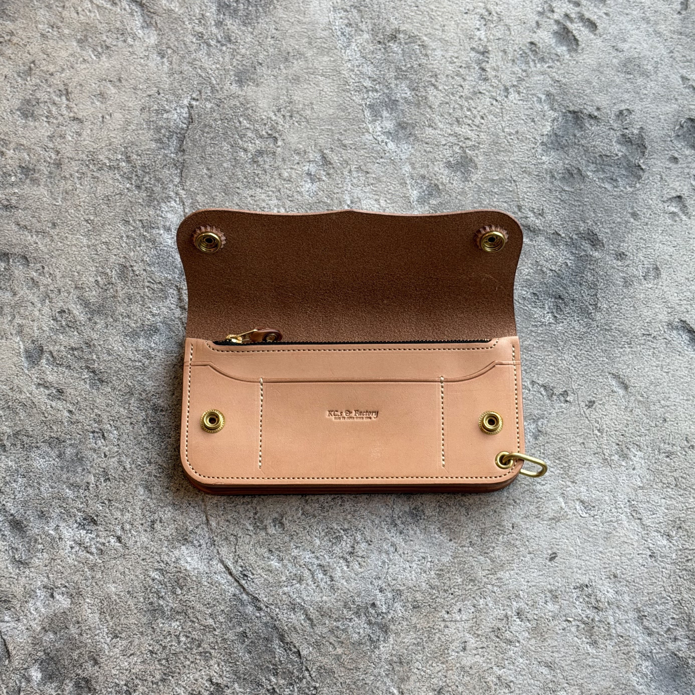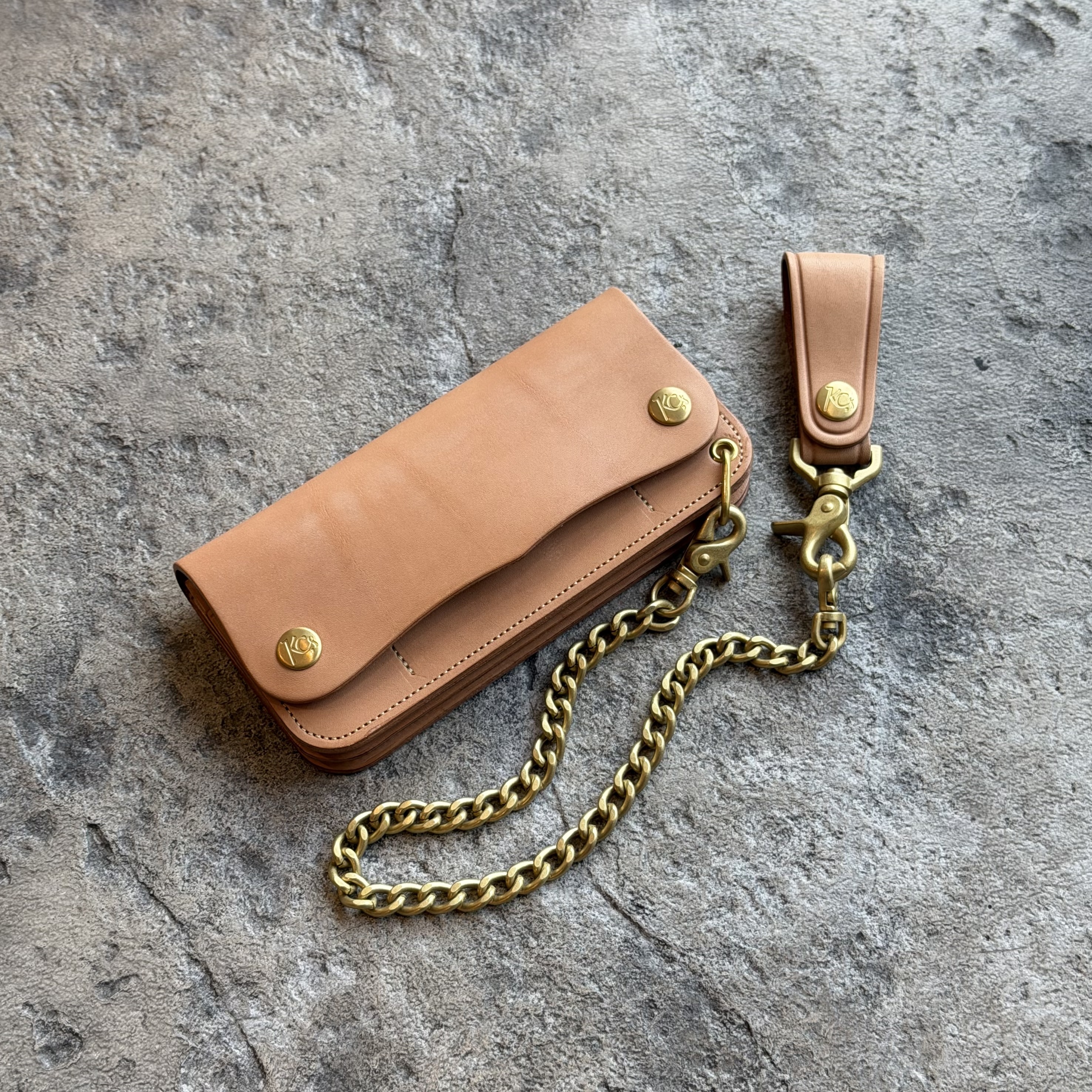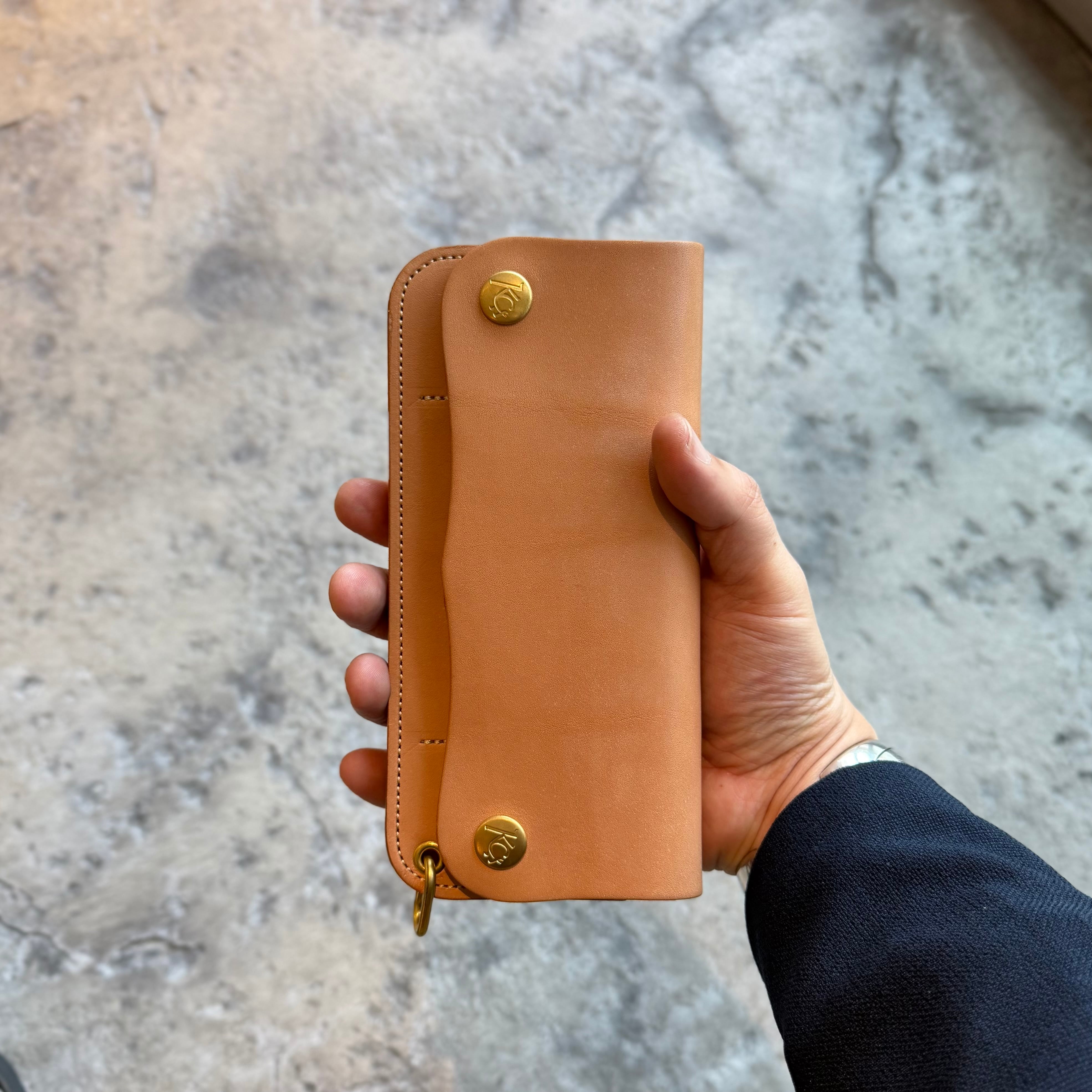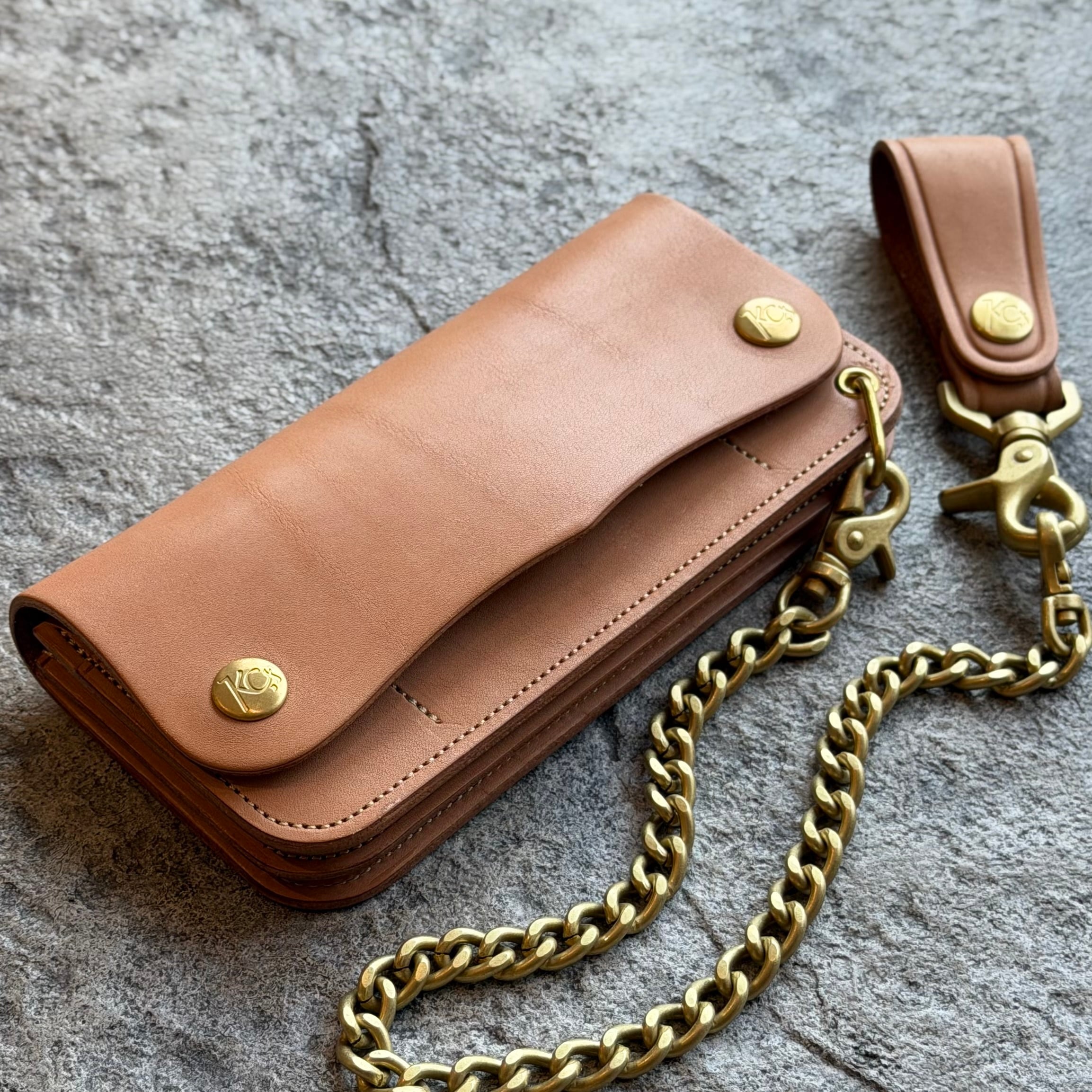 素材には、このトラッカーウォレットのためだけに特別に製作した、KC,sオリジナルの栃木レザーを使用。