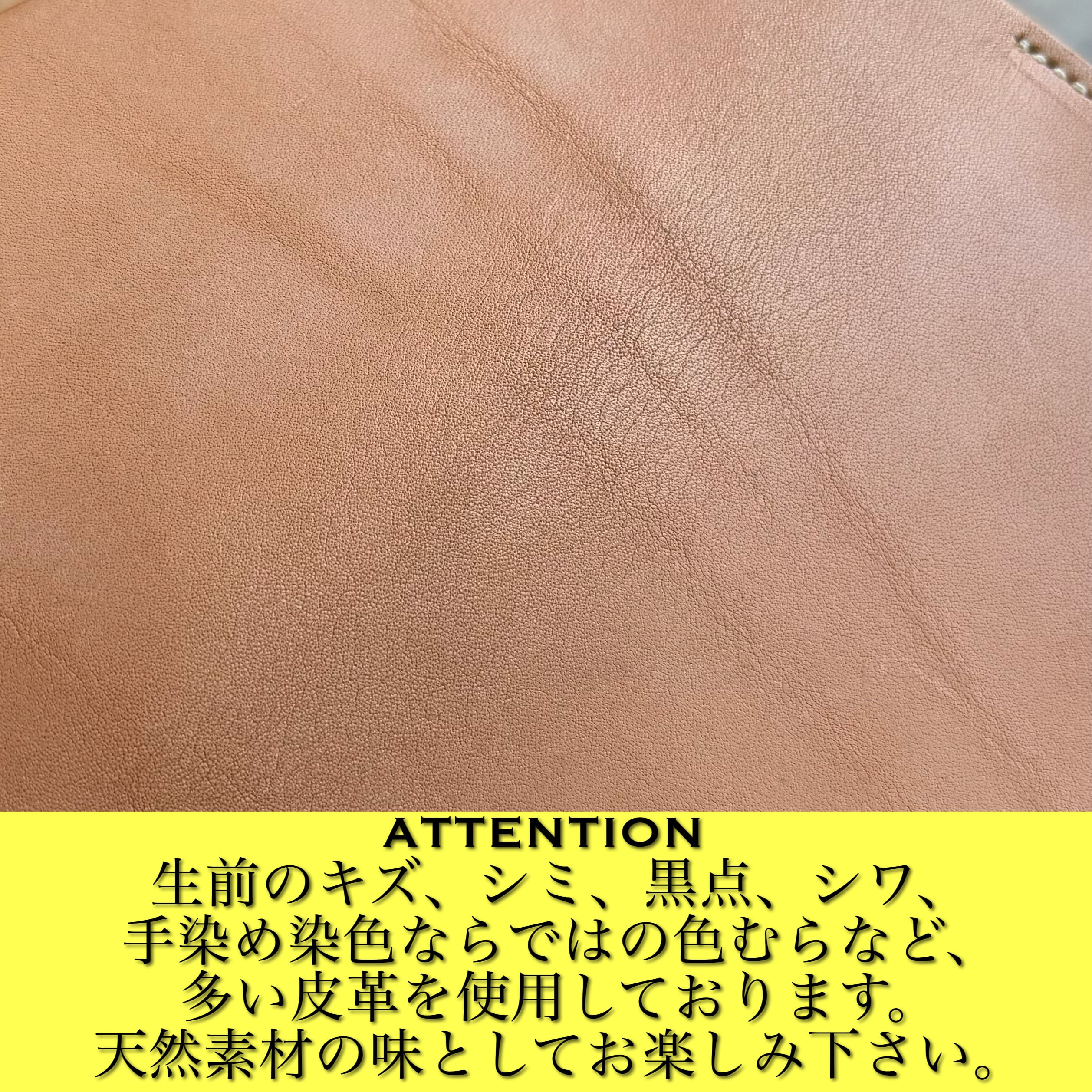 革表面にキズ、色ムラ、シワ、黒点などがある場合がありますが、天然皮革の個性としてお楽しみ下さい。