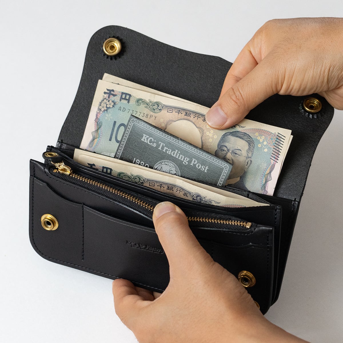 耐久性を極限まで高めながらも、KC,sオリジナルの栃木レザーが放つ上質な艶とブラスの重厚な経年変化が、圧倒的な美しさを生み出します。