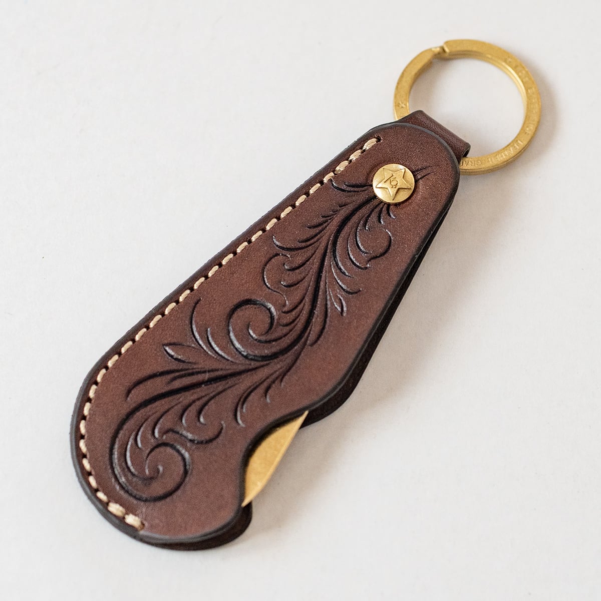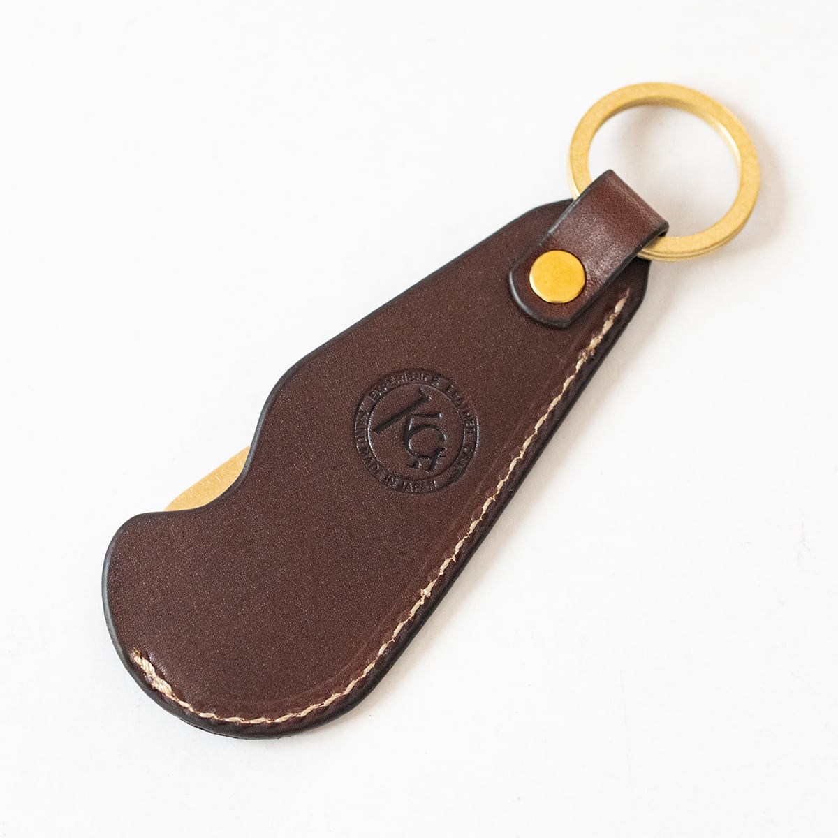 キーリングとして使えるだけでなく、外出先で靴を履くときに役立つシューホーン(靴べら)を一体化。