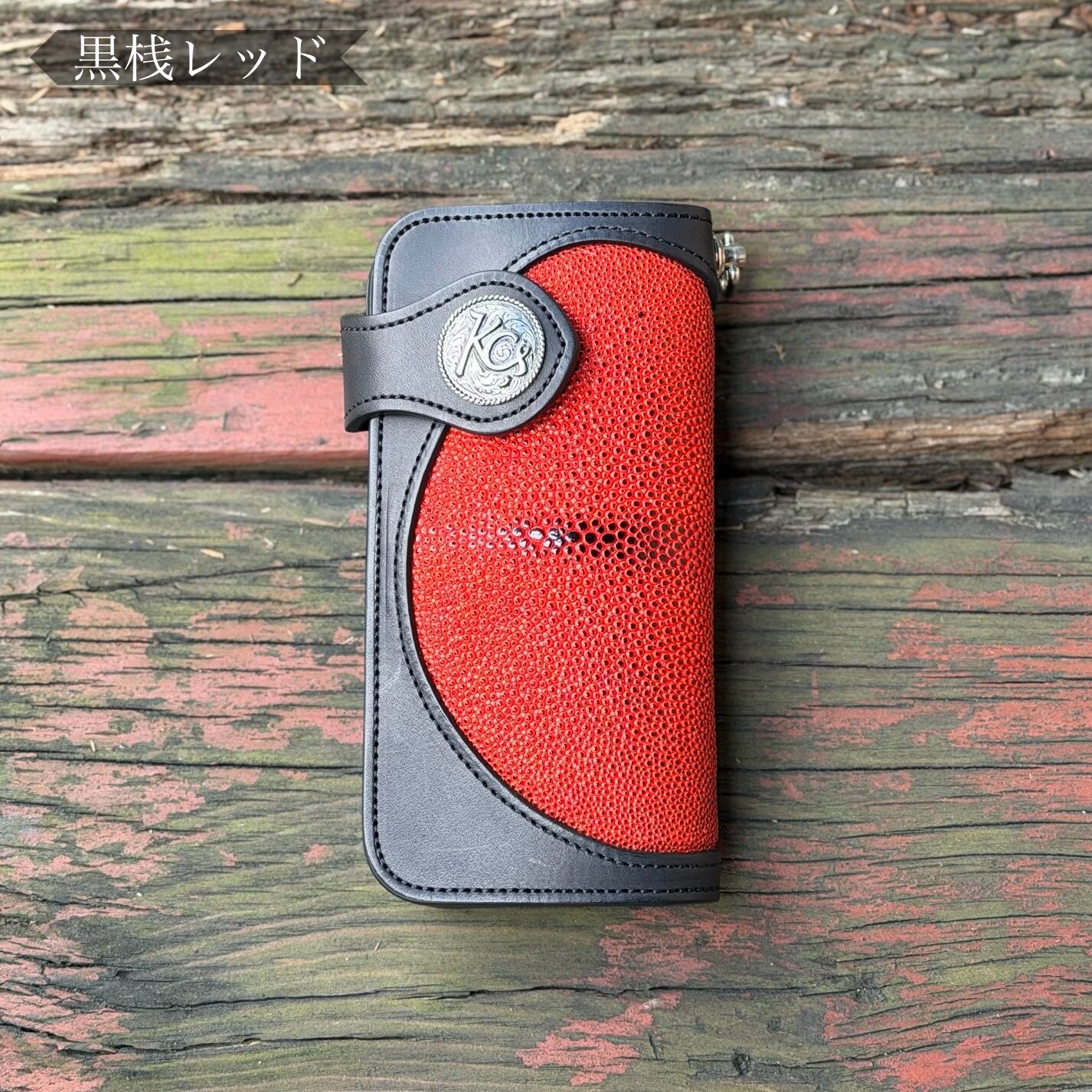 【直営店限定商品】ライダースウォレット リンガー インレイ 姫路黒桟革 スティングレイ(レッド)