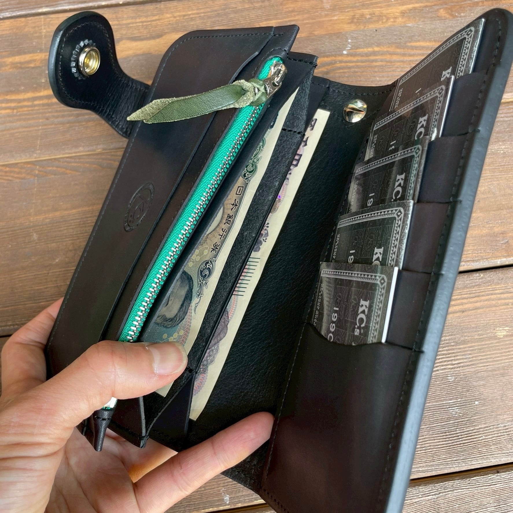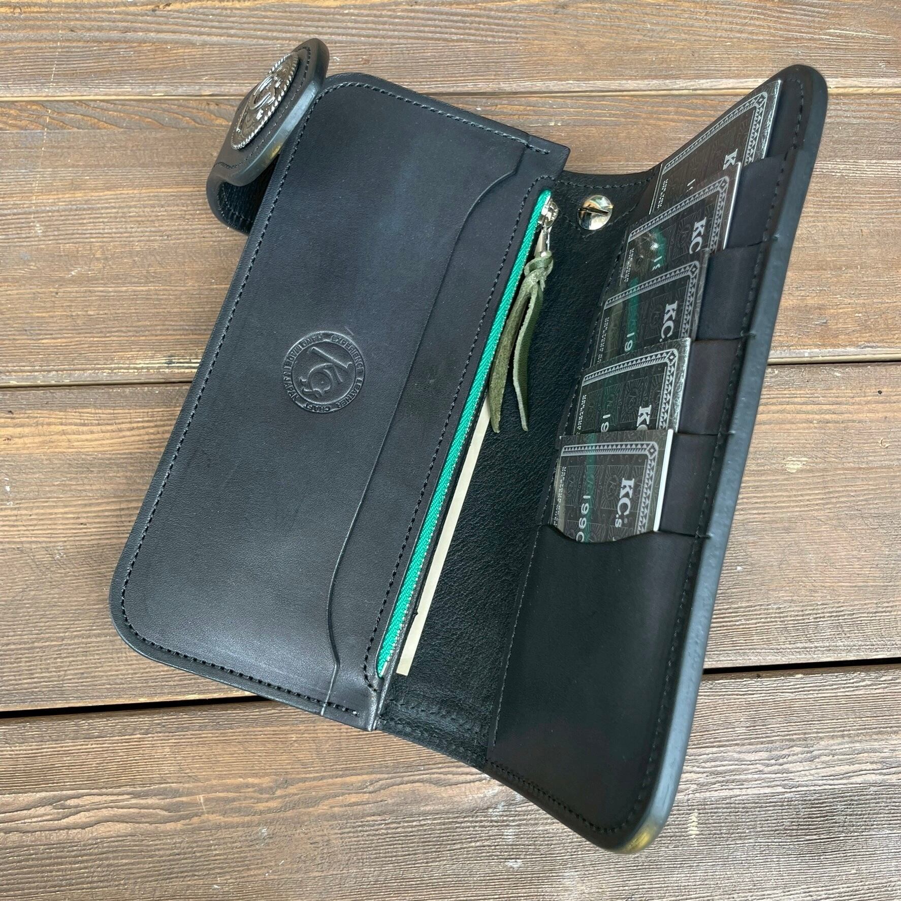 KC,sオリジナルのコンチョがアクセントとなり、武骨さと品格を両立。