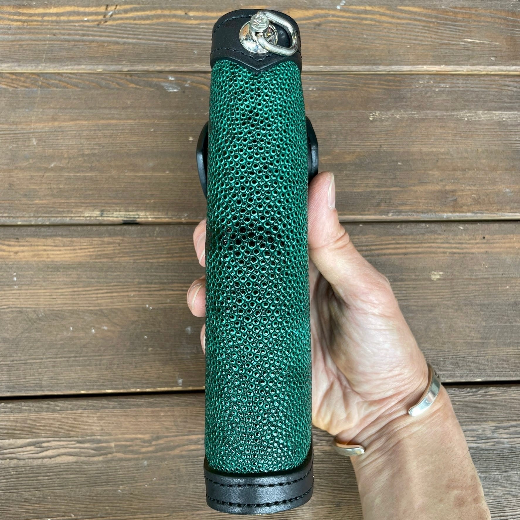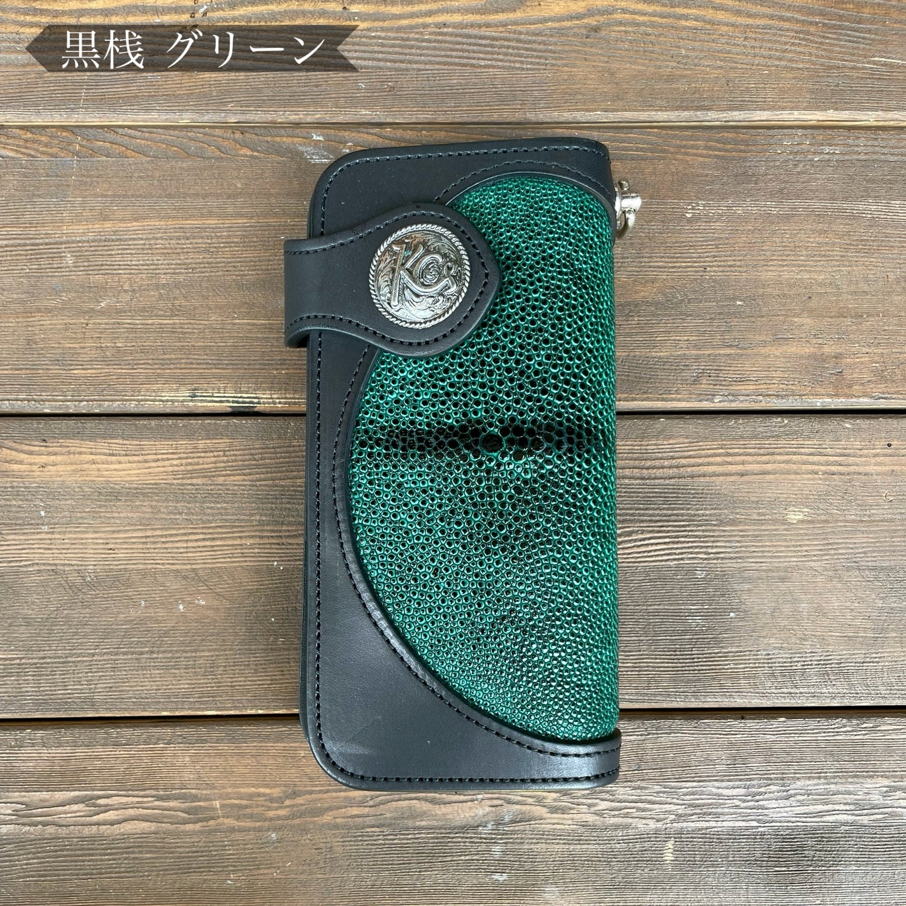 【直営店限定商品】ライダースウォレット リンガー インレイ 姫路黒桟革 スティングレイ(グリーン)