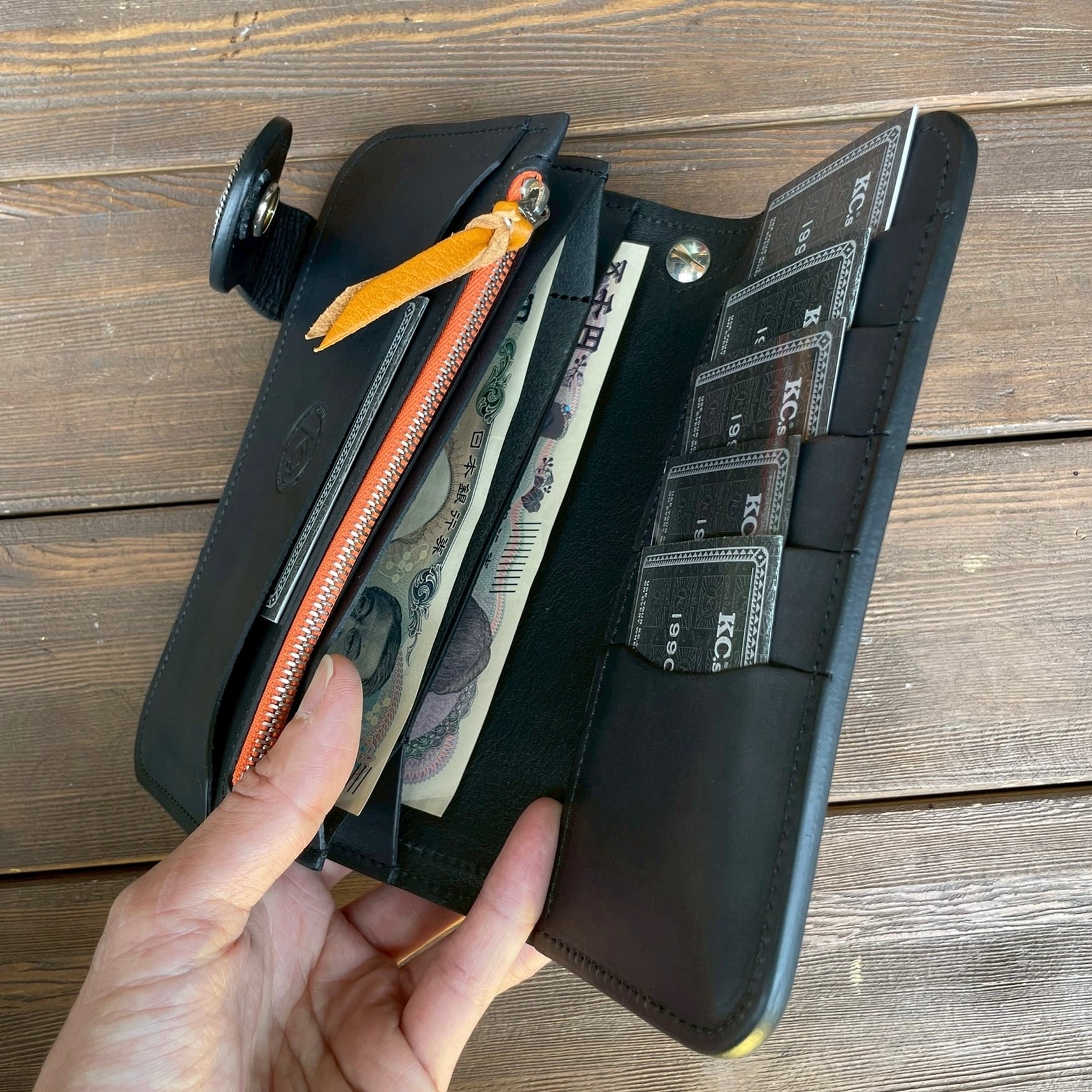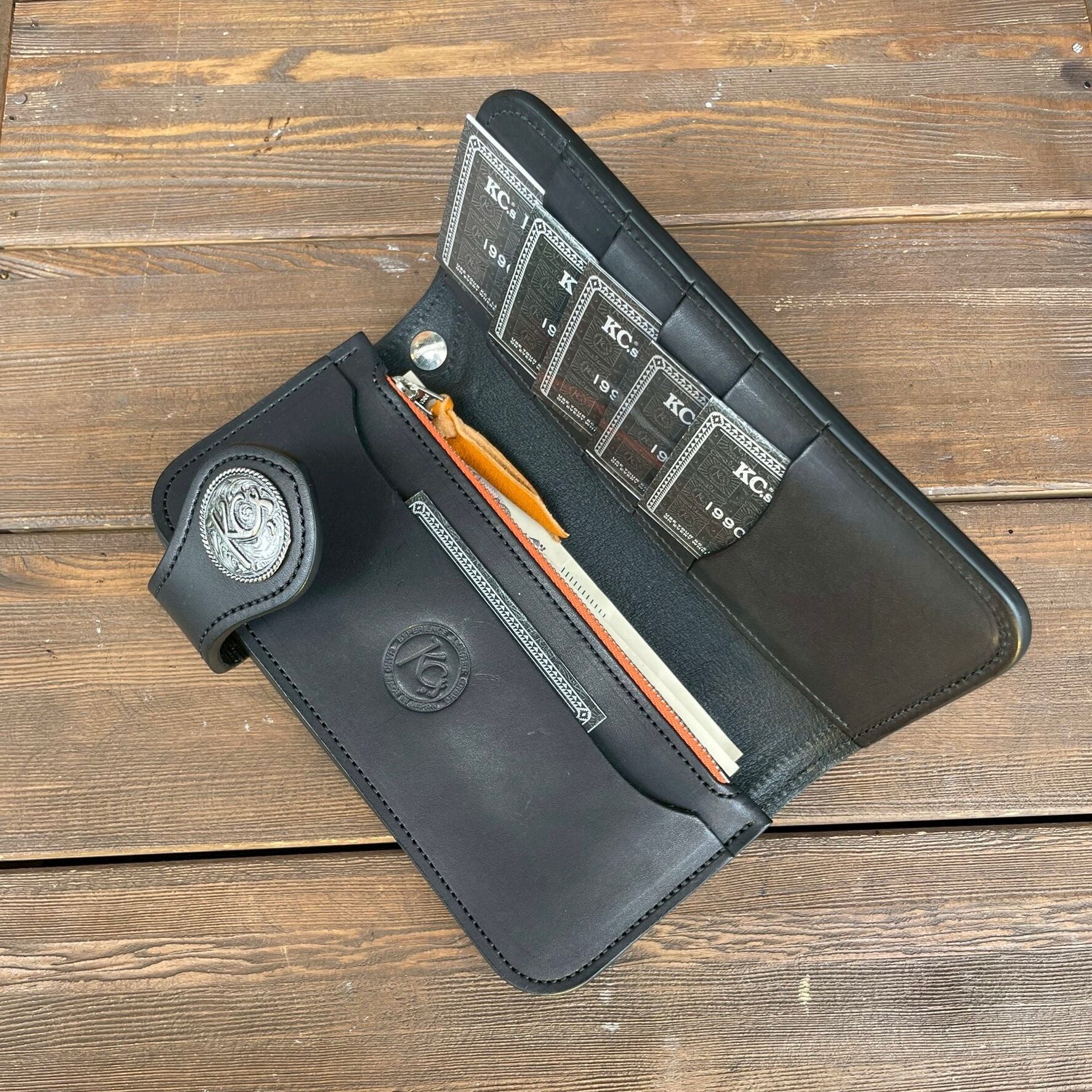 KC,sオリジナルのコンチョがアクセントとなり、武骨さと品格を両立。