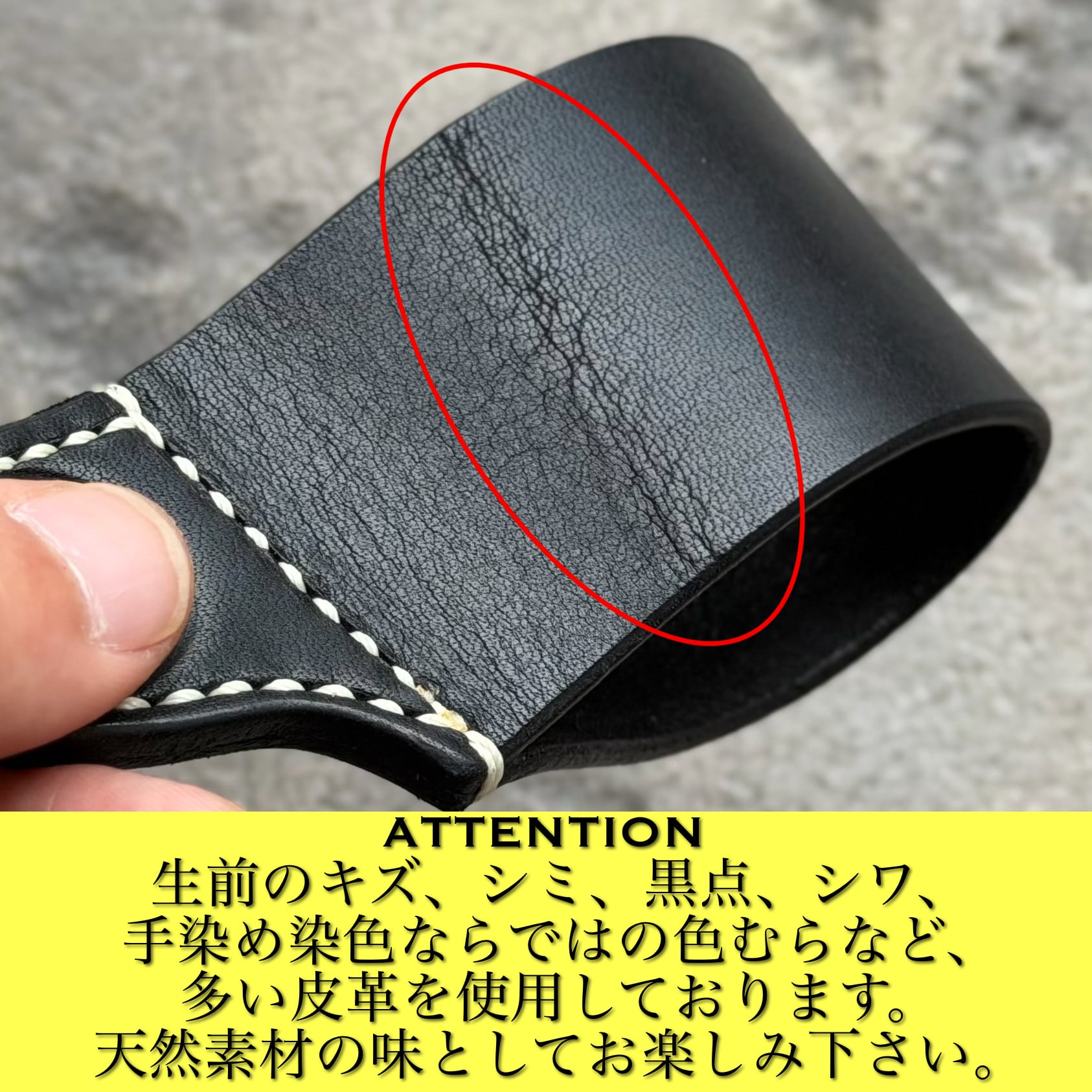 革表面にキズ、色ムラ、シワ、黒点などがある場合がありますが、天然皮革の個性としてお楽しみ下さい。