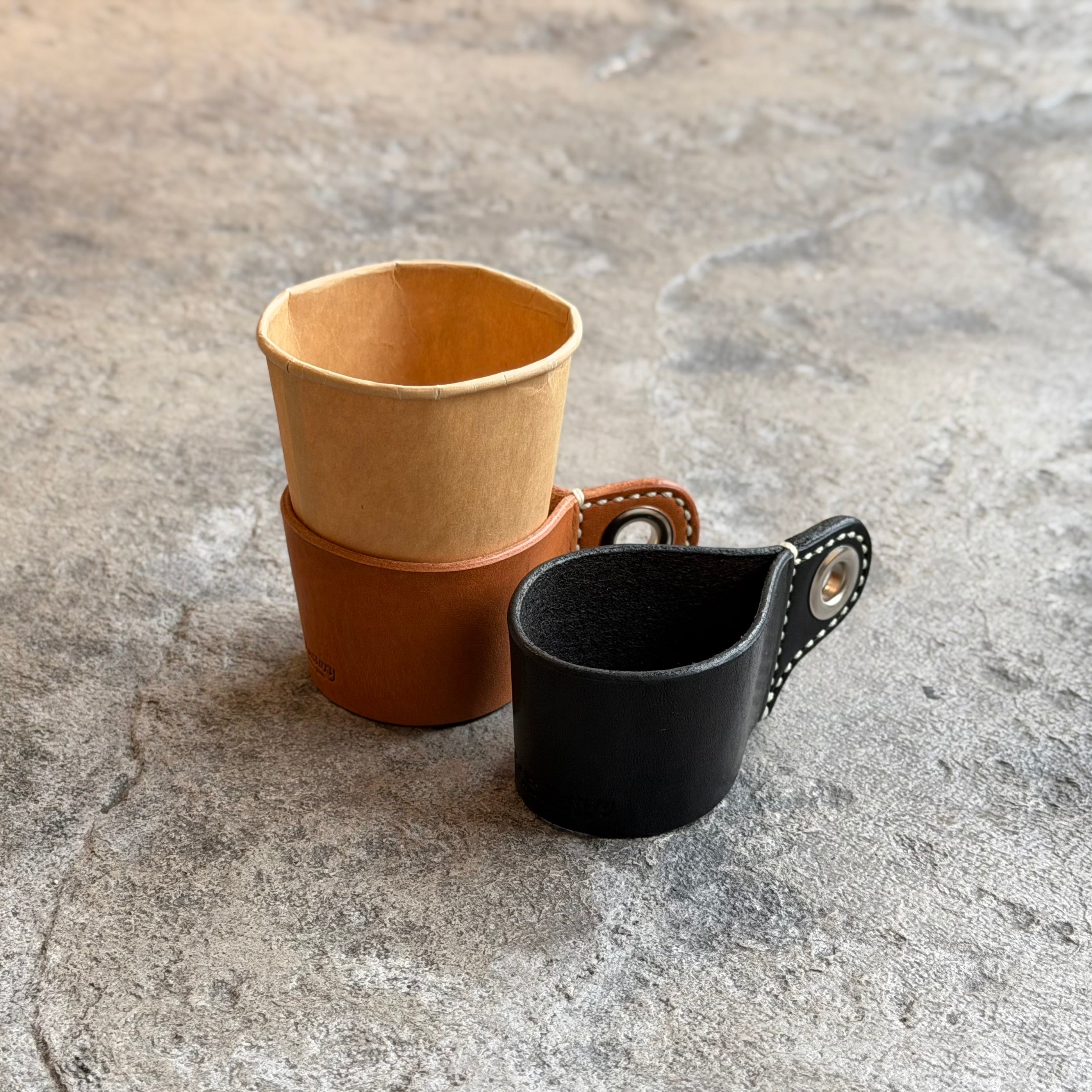 紙コップ5オンス(156ml)に装着できるレザーホルダーです。