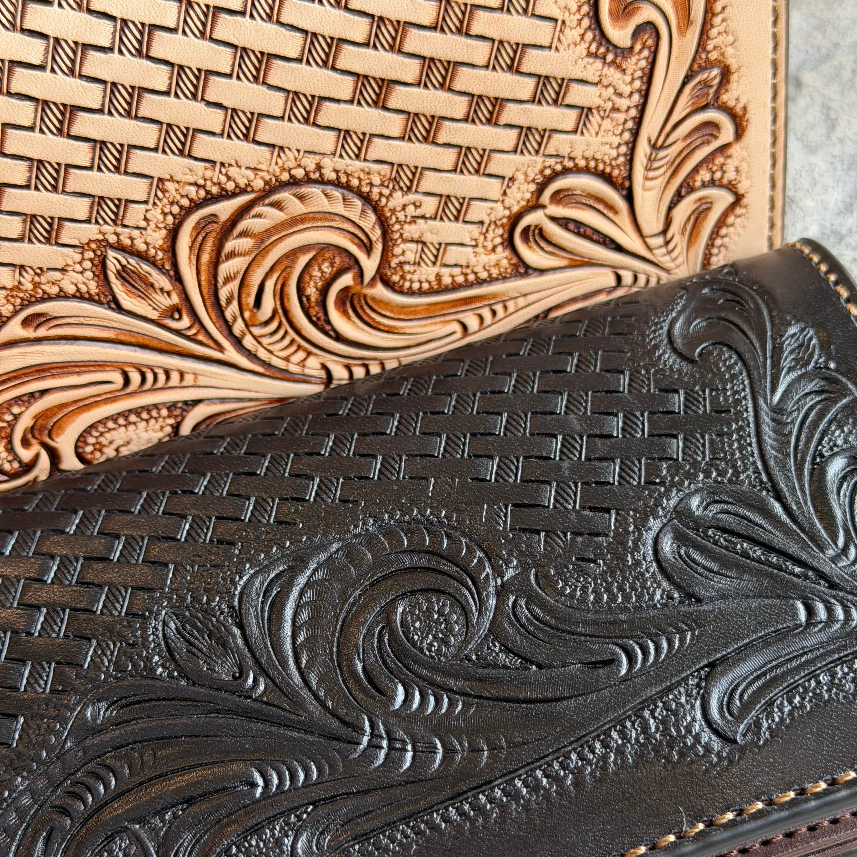 キメが細かく、手染めやカービングに適したヨーロッパ産の高級皮革を使用しています。
