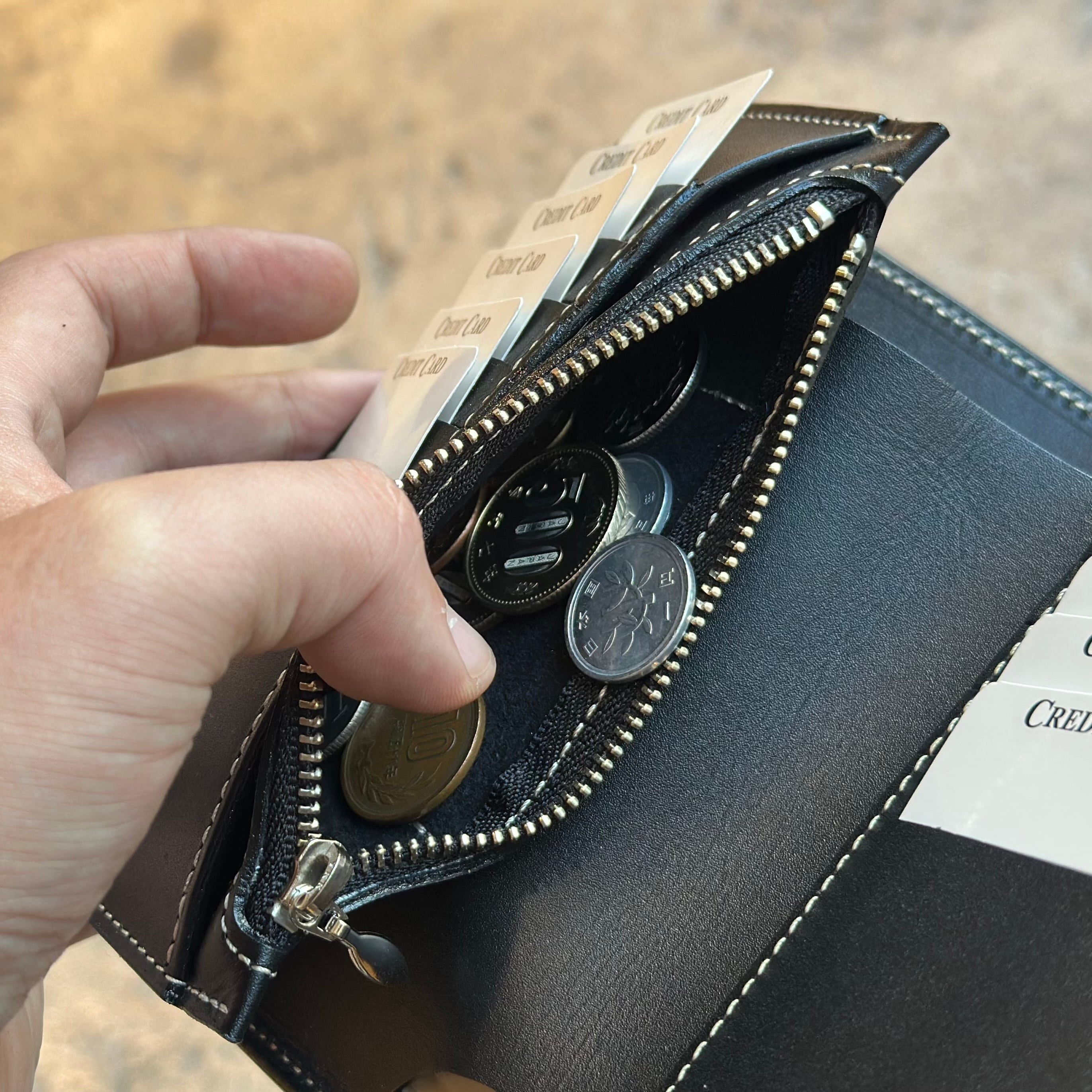 カードホルダーが12個と両サイドのカードホルダーの下に大きなポケットがあります。
