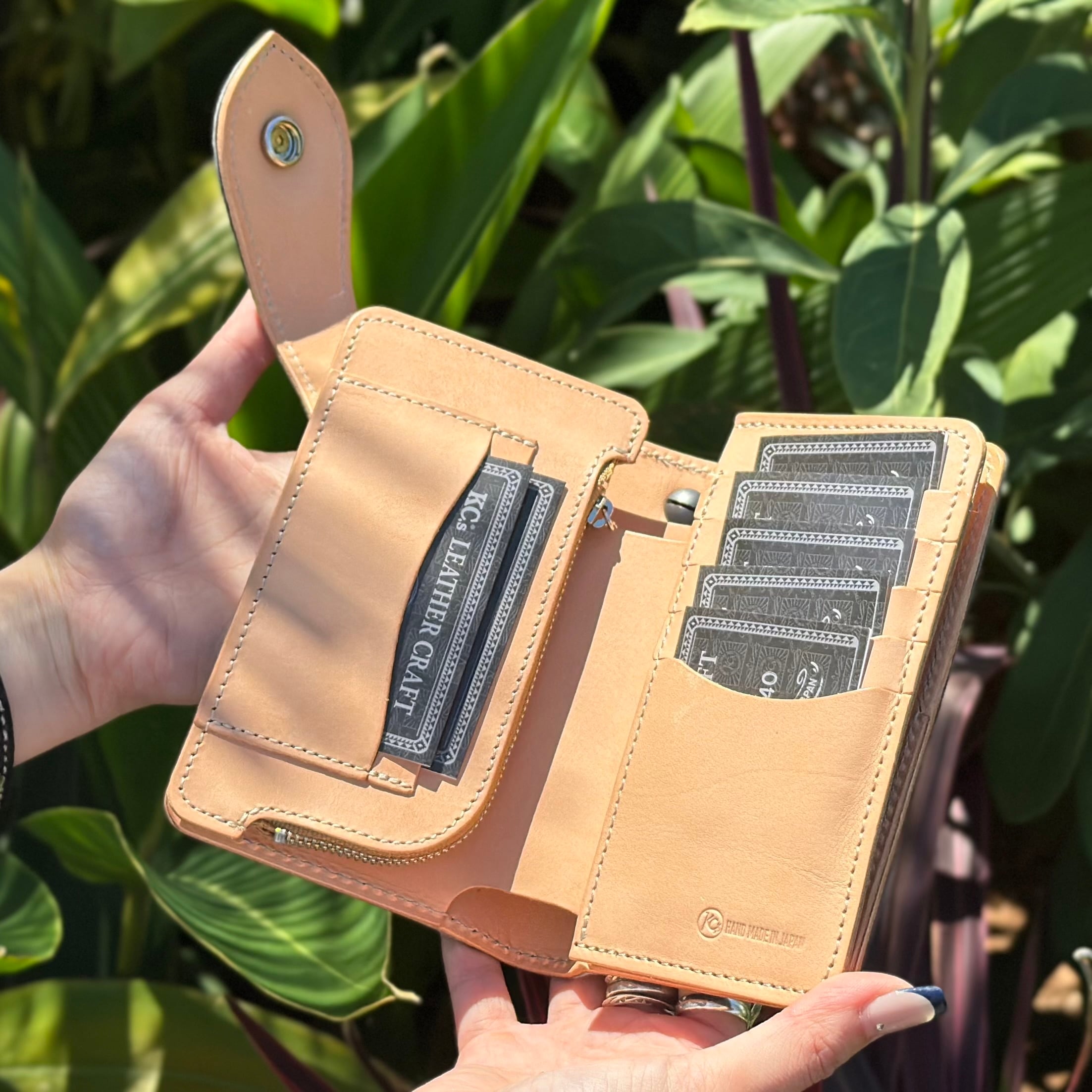 二つ折り財布では小さい、ロングウォレットでは大きすぎるといった方にお勧めです。