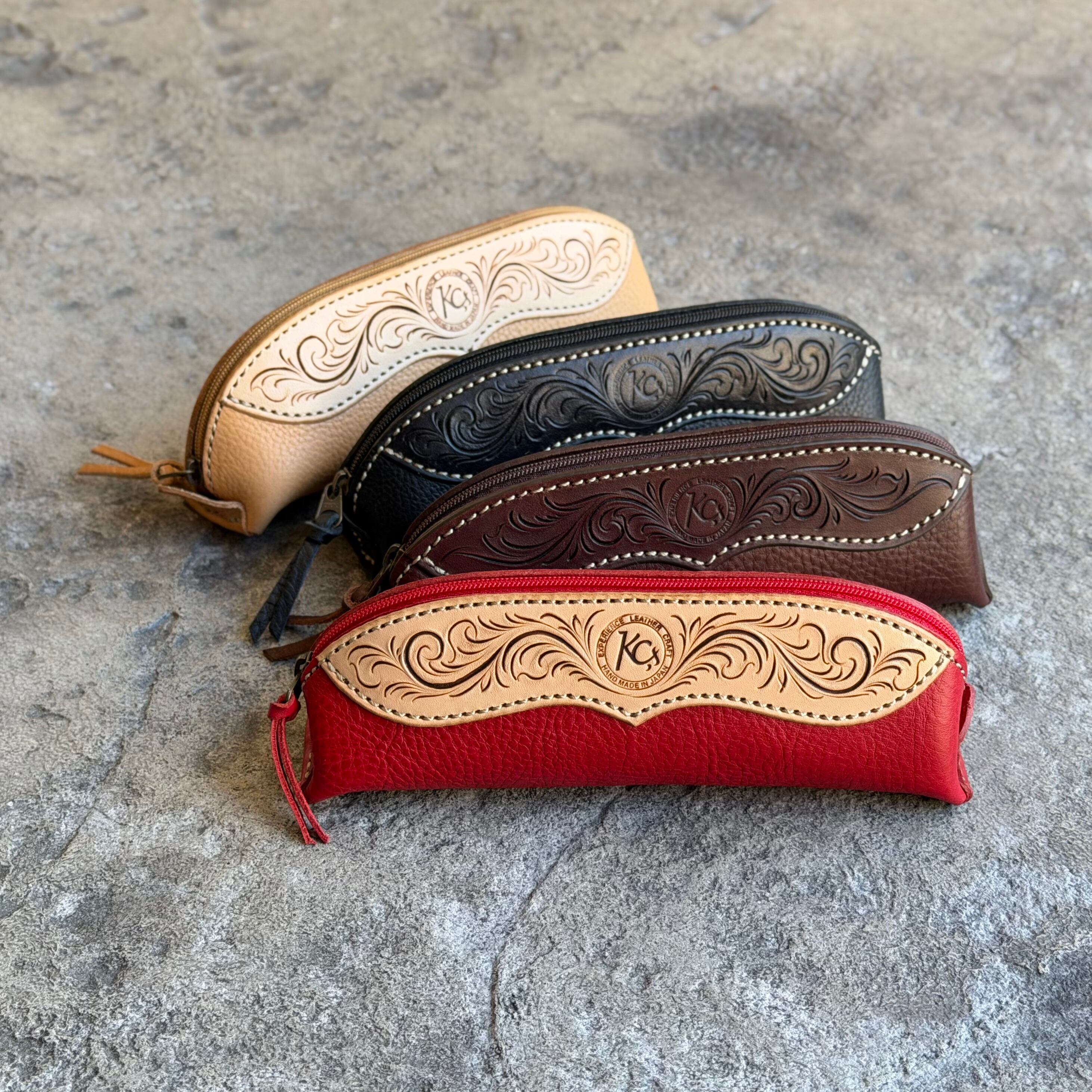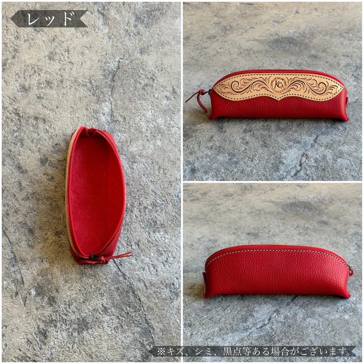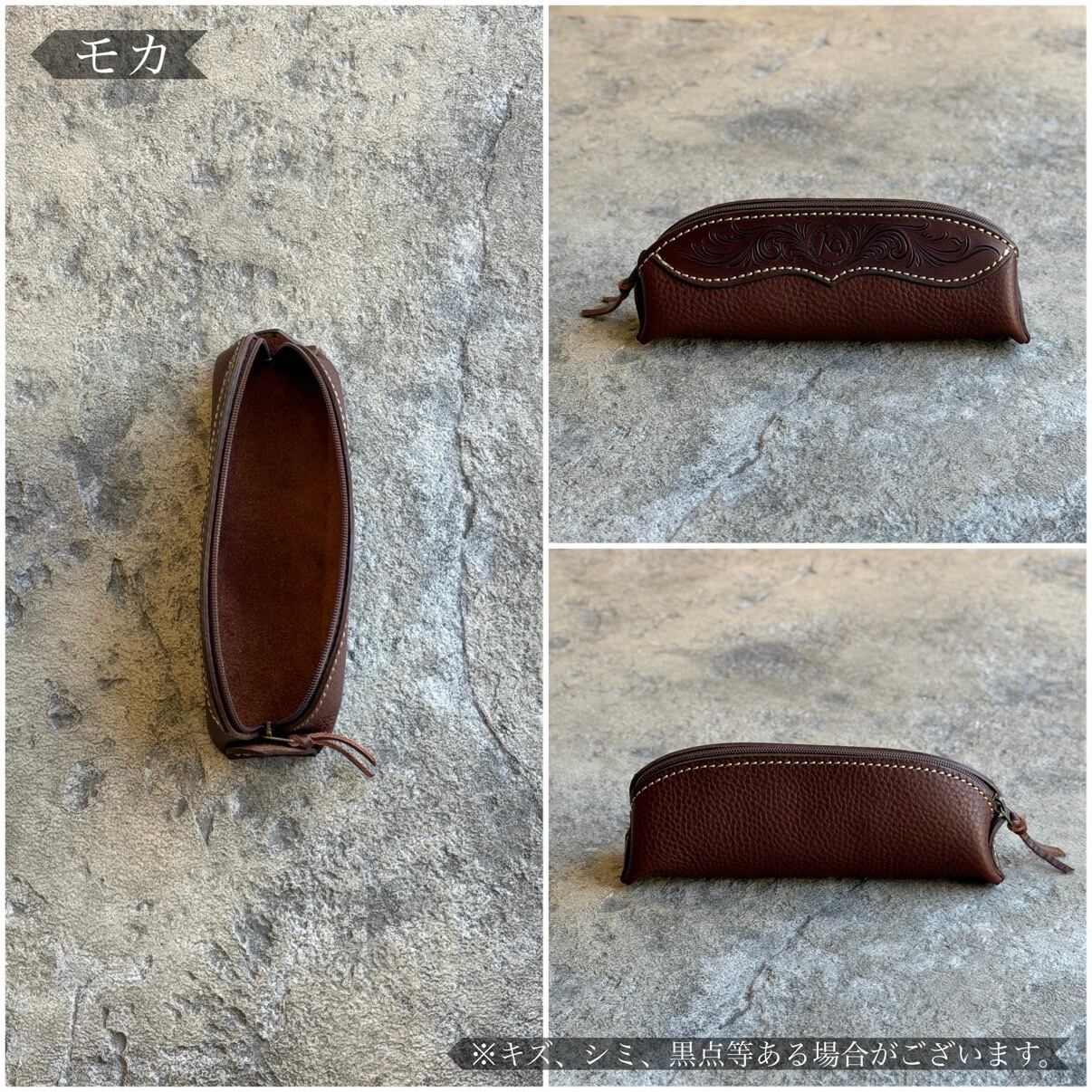 イタリアンレザーとカービングのファスナーペンケースです。