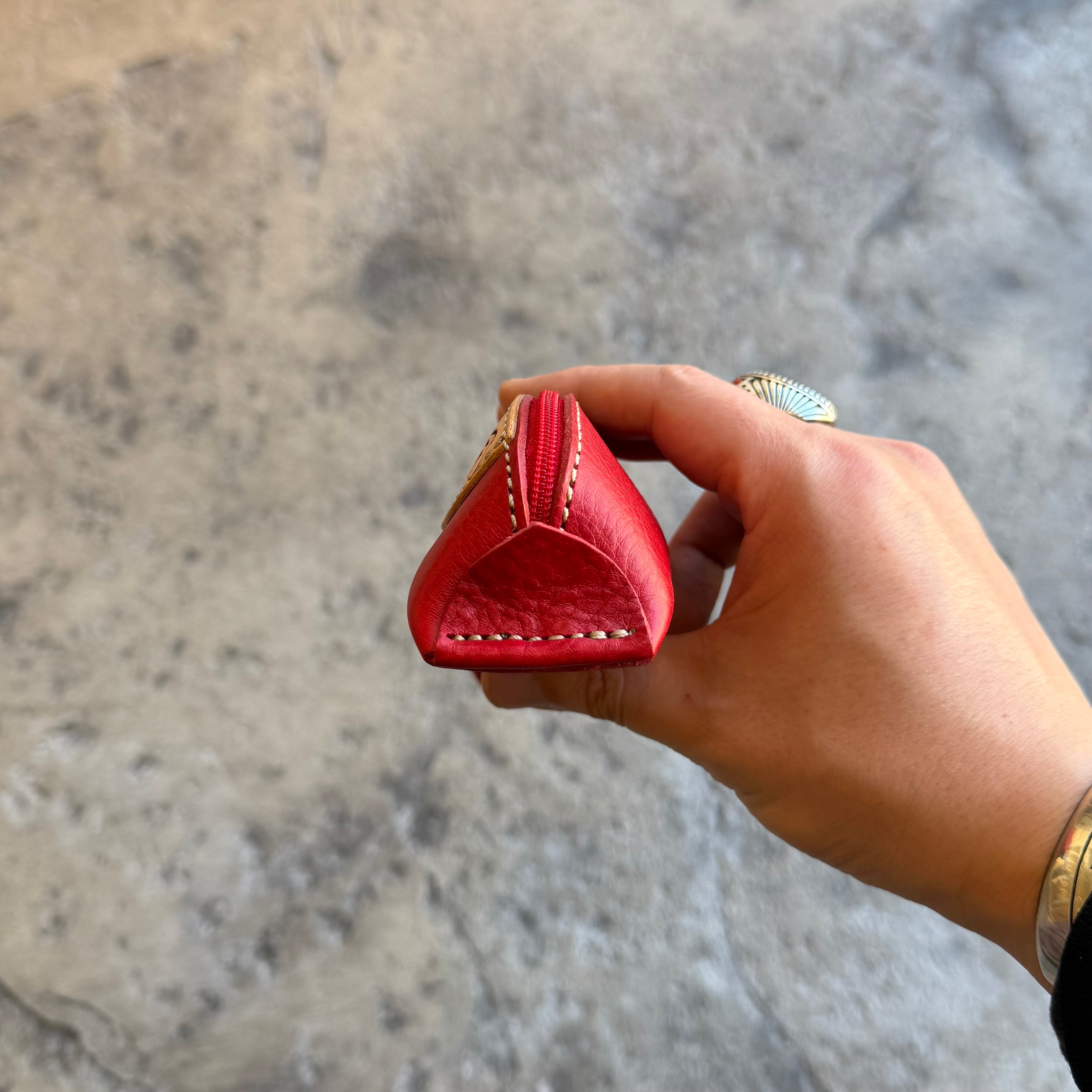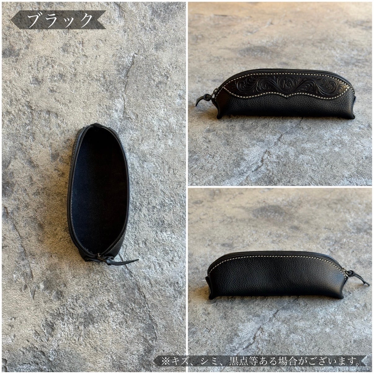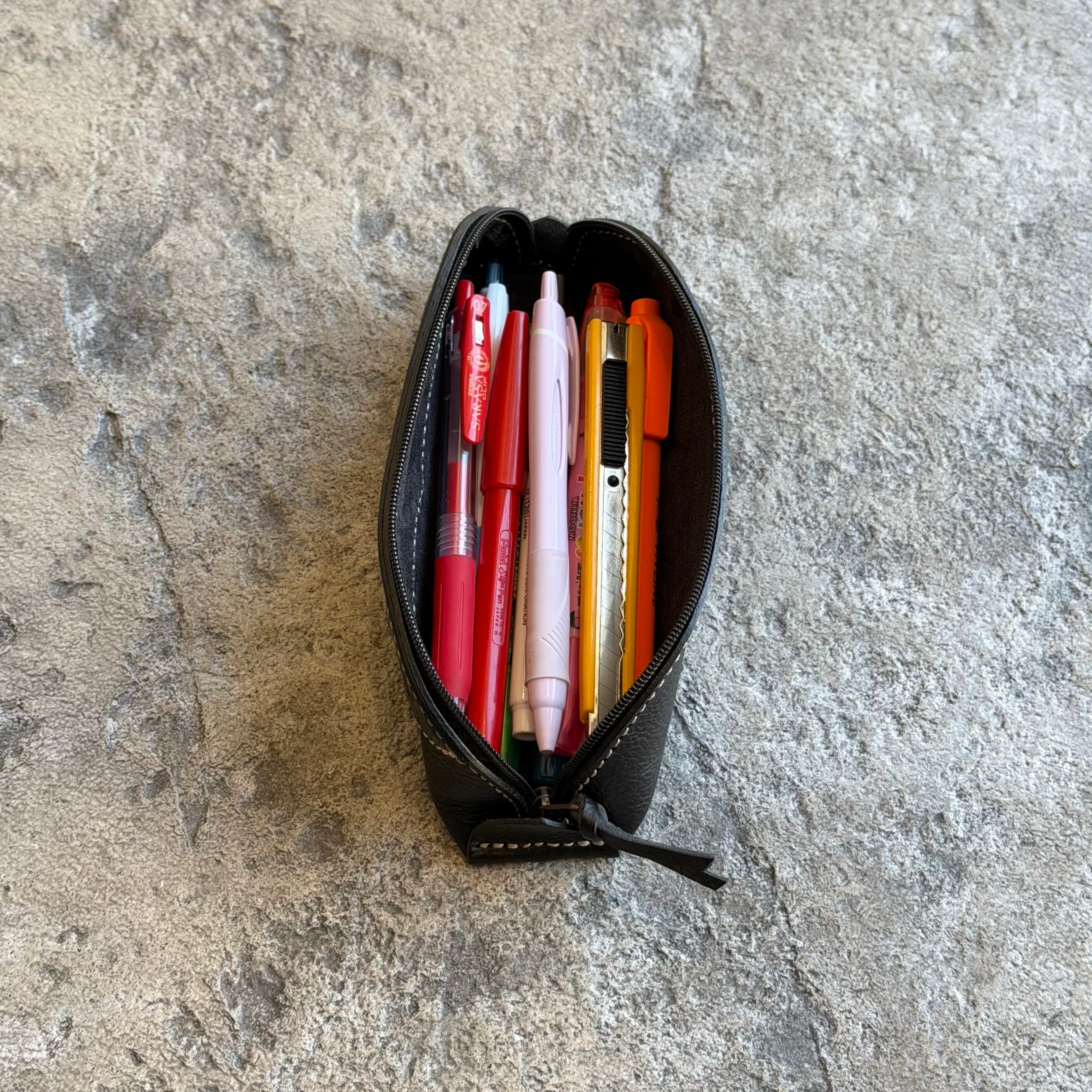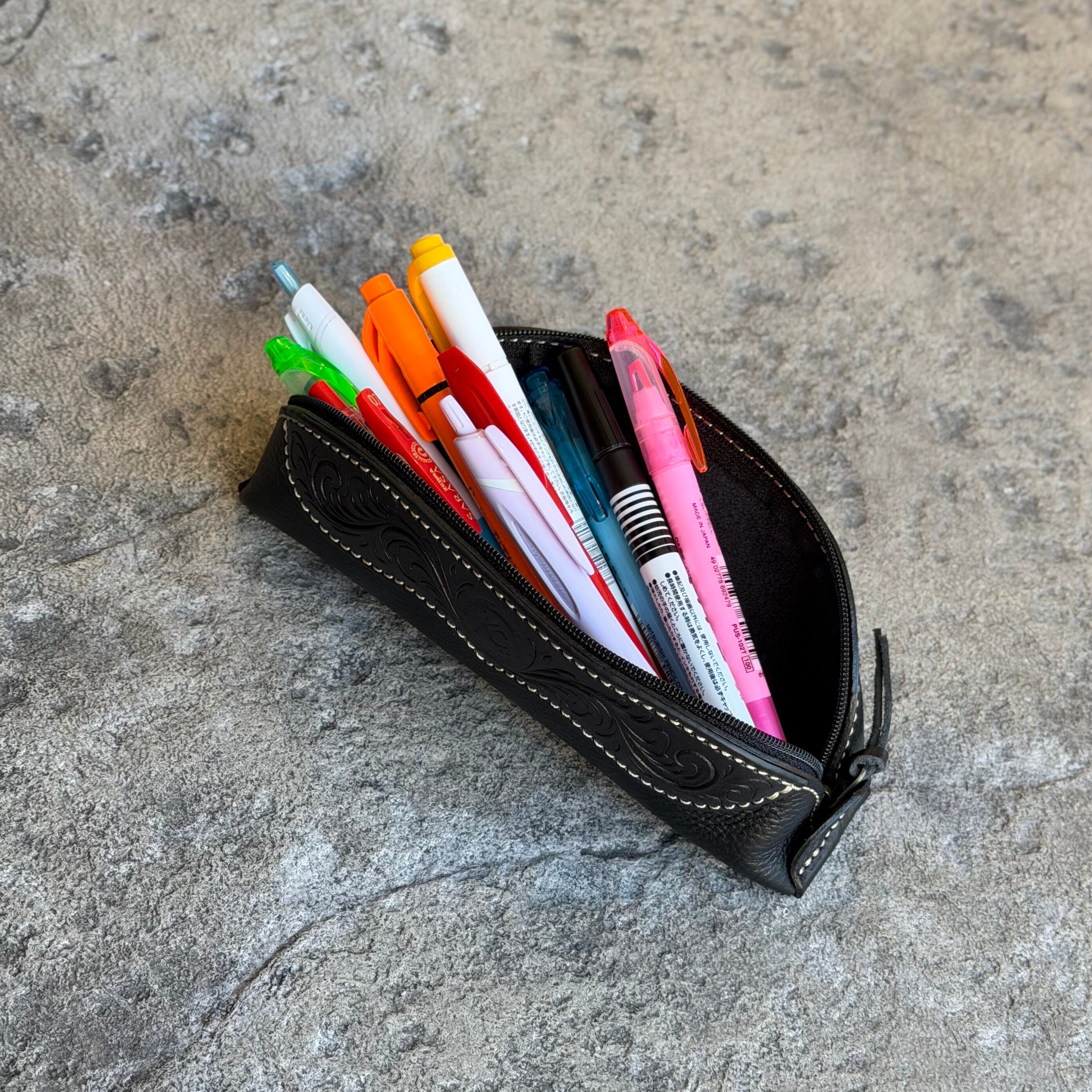 イタリアンレザーとカービングのファスナーペンケースです。