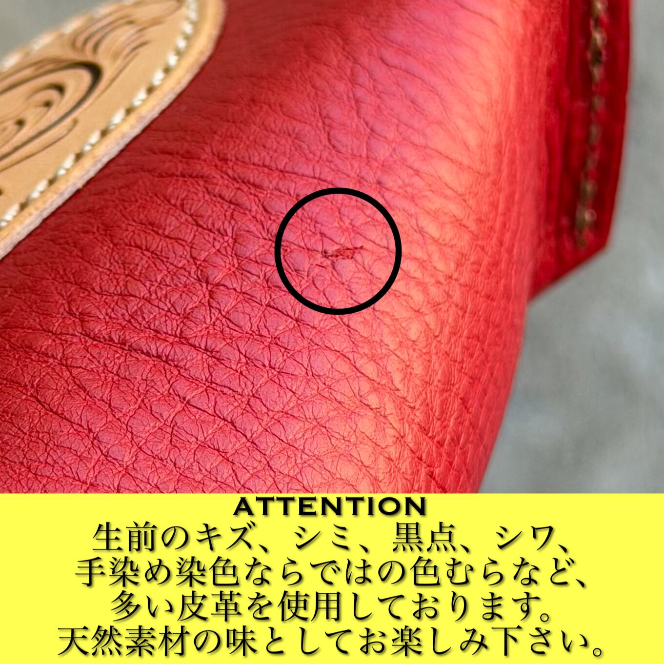 革表面にキズ、色ムラ、シワ、黒点などがある場合がありますが、天然皮革の個性としてお楽しみ下さい。