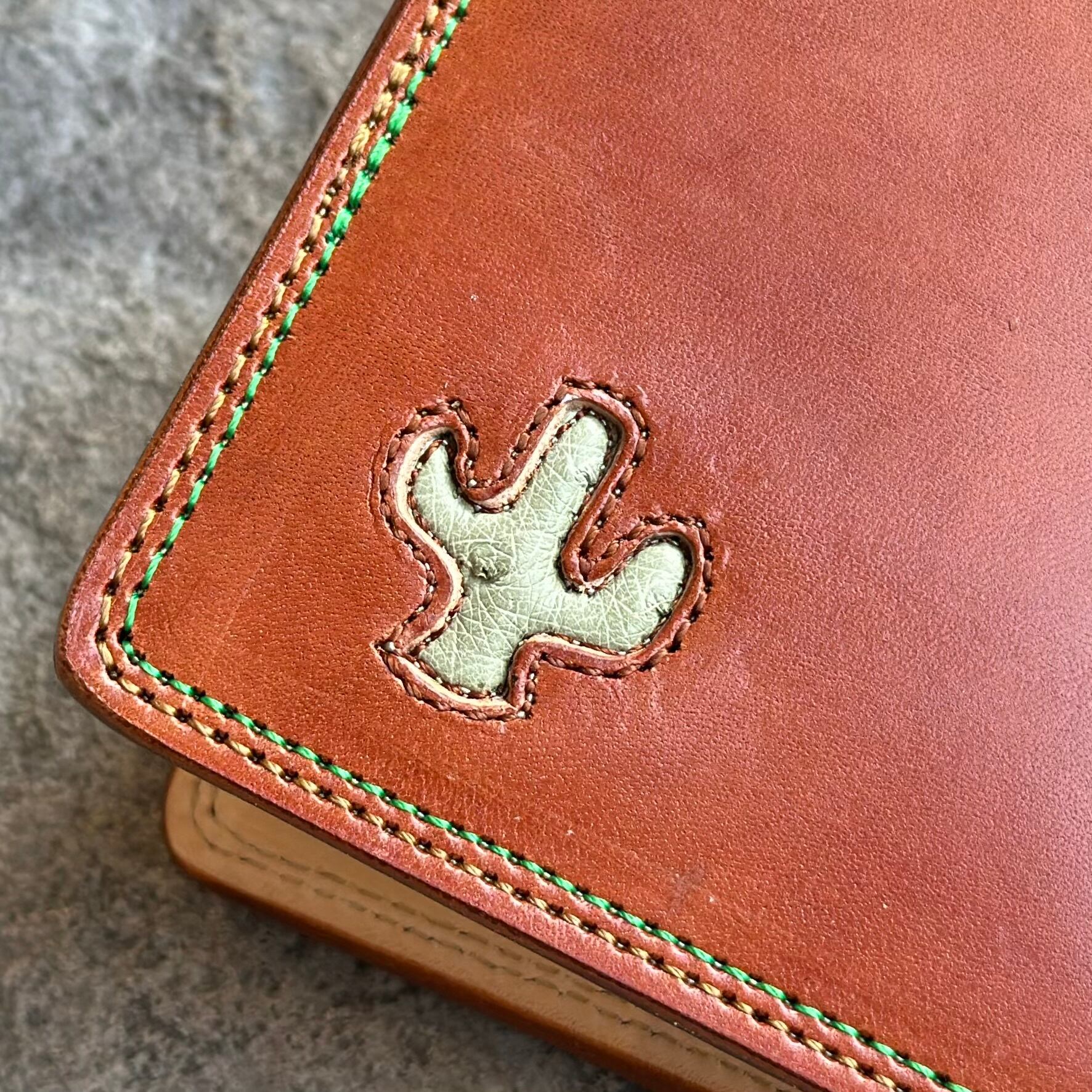サボテン部分には、スムースオーストリッチレザーをインレイしています。