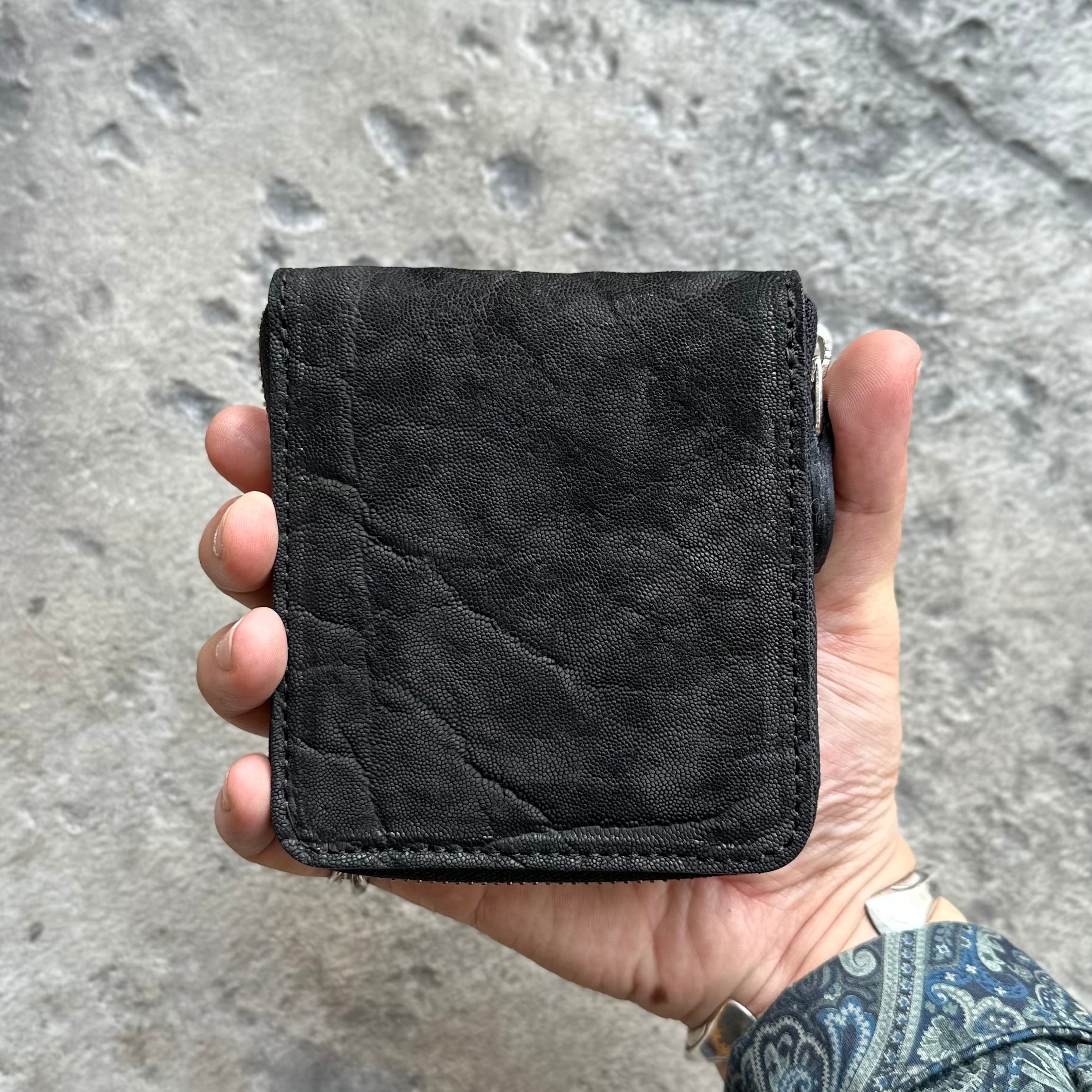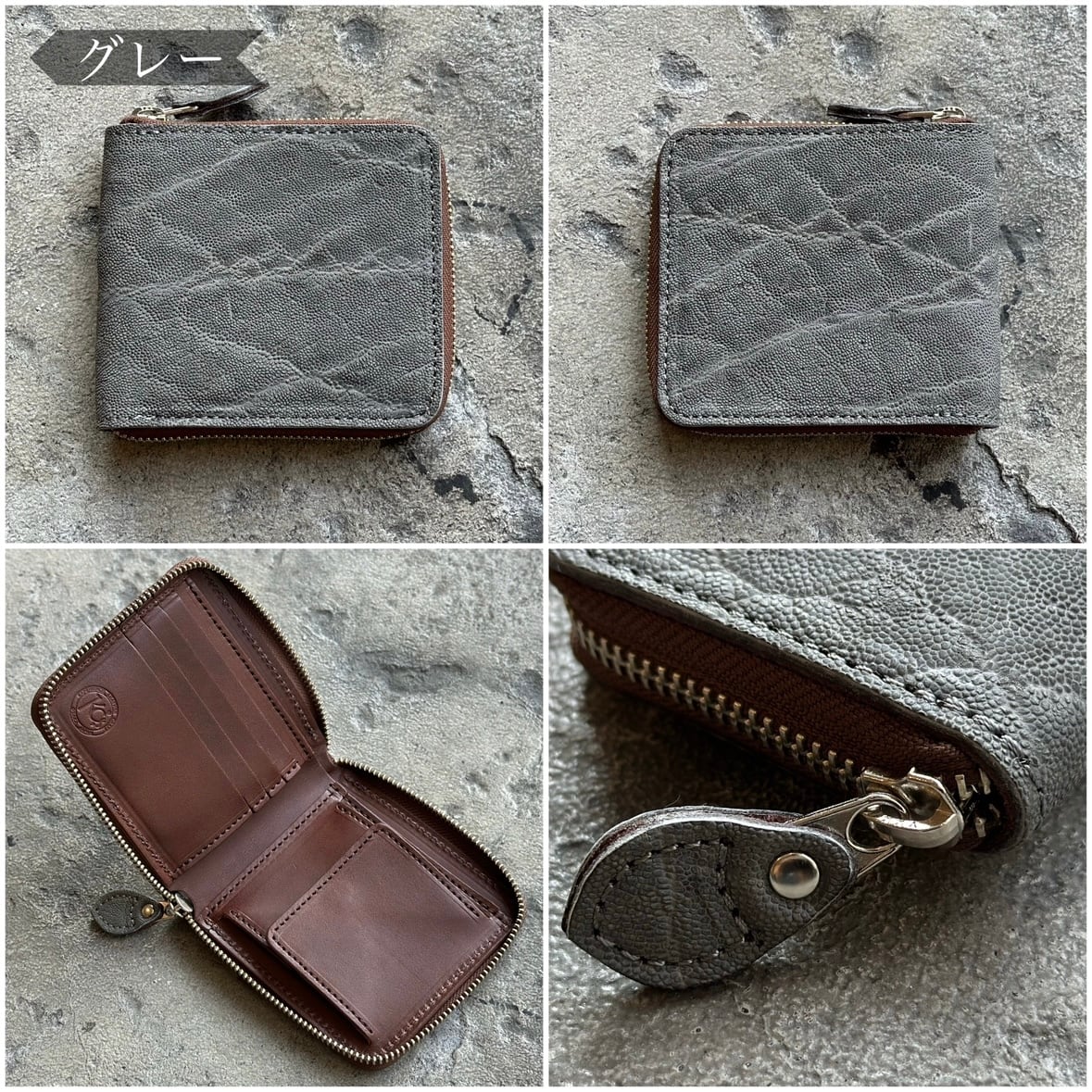 素材の象革は厚く丈夫で特有の大きなヒダ、シワがあり、細かい粒状に隆起した銀面は象革のみが持つ特徴です。