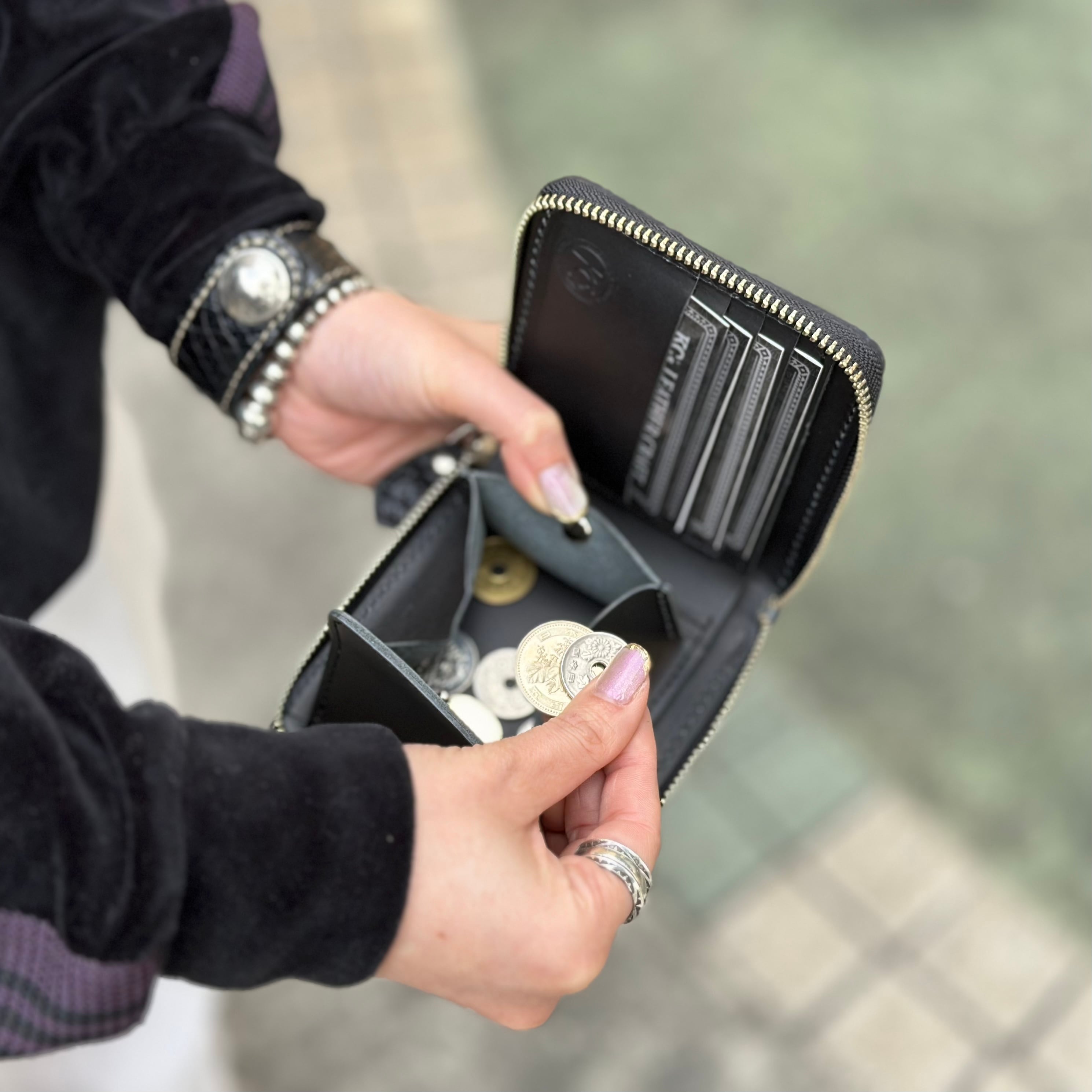 カードホルダーが4つあり、小銭入れはスナップボタン式で、4方向に大きく開く仕様で、使い勝手も抜群です。