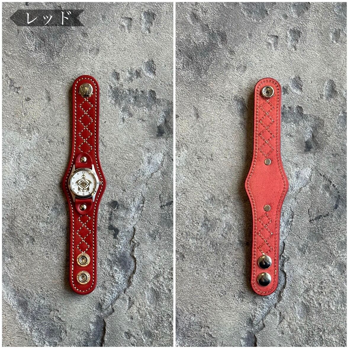 ダイヤ柄のステッチが特徴的なウォッチブレス。