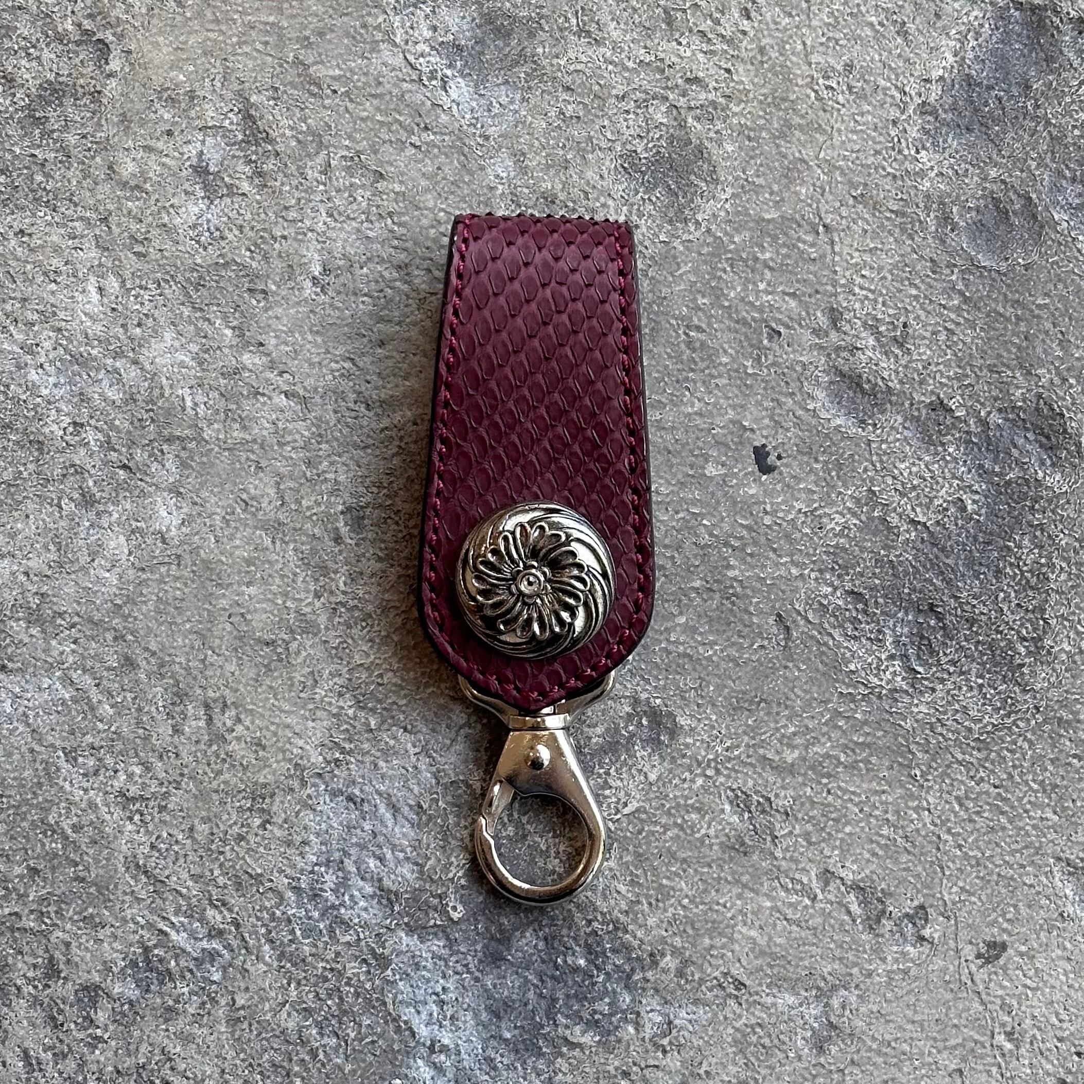 マット仕上げのパイソン革が持つ独特の艶消しの質感と、フローラルカービングの繊細なデザインのコンチョが見事に融合しています。