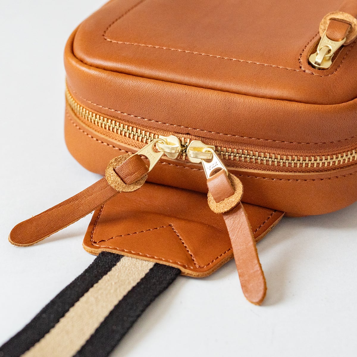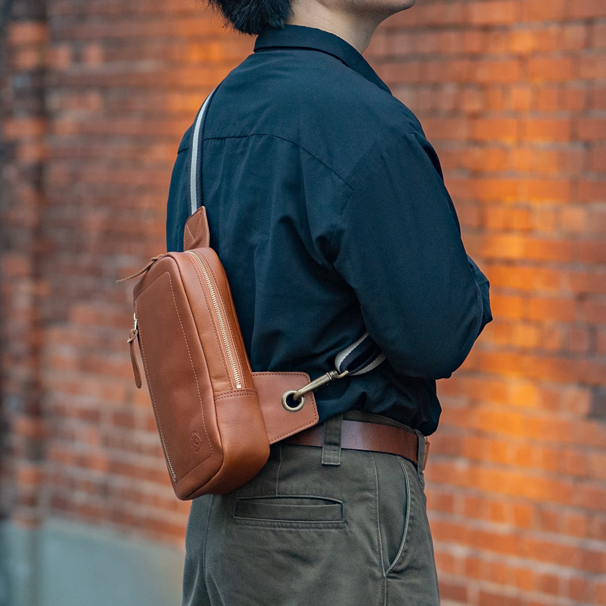 持ち手にはボディーと同素材同色の栃木レザーのストラップを付け、開閉もスムーズに行うことが出来ます。